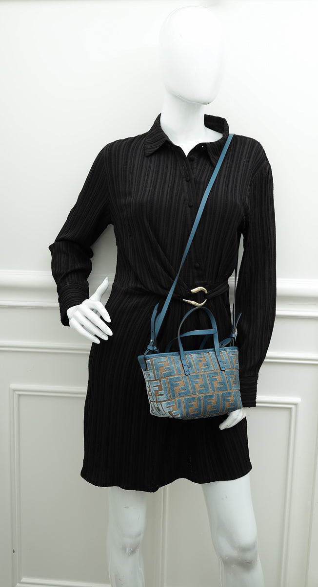 Fendi Light Blue FF Jacquard Velvet Roll Mini Bag
