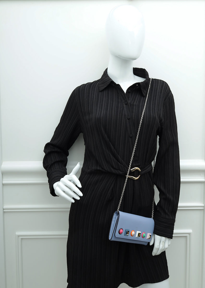 Fendi Lilac Blue Multicolor Studded Continental Wallet on Chain-Fendi-THE CLOSET