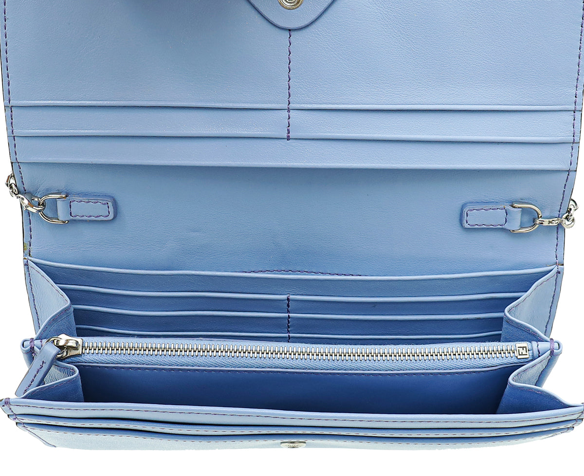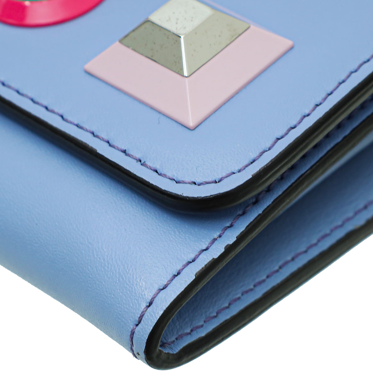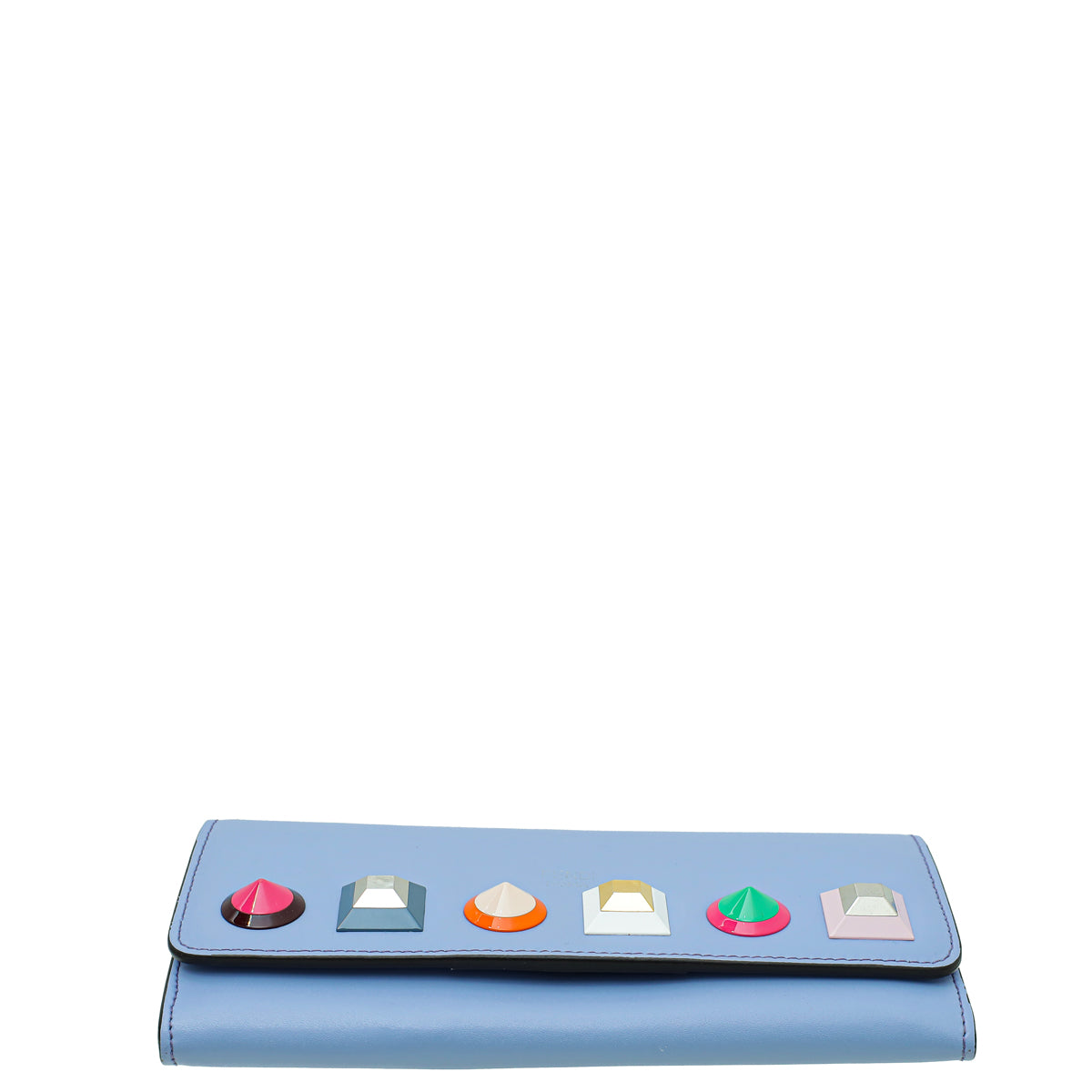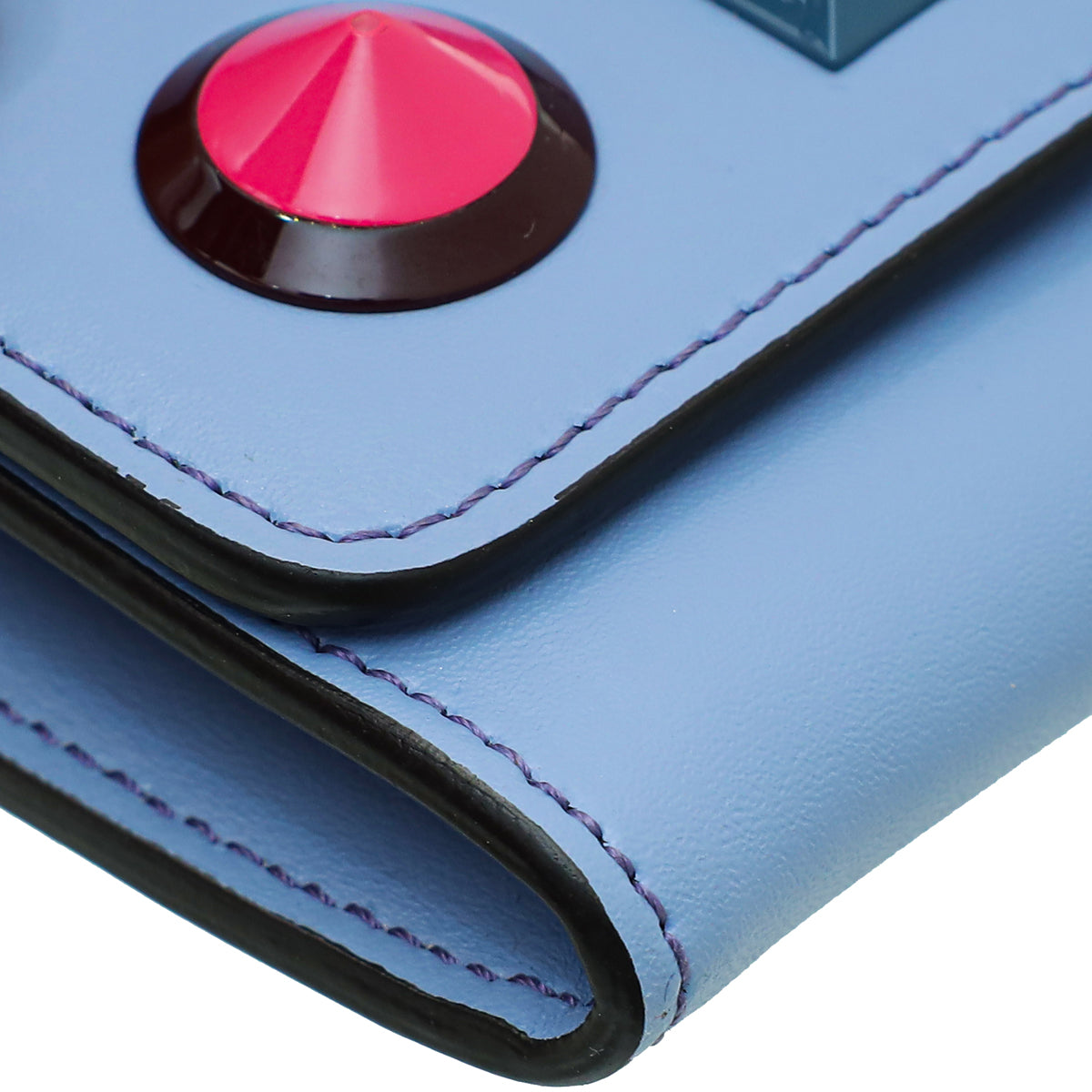 Fendi Lilac Blue Multicolor Studded Continental Wallet on Chain