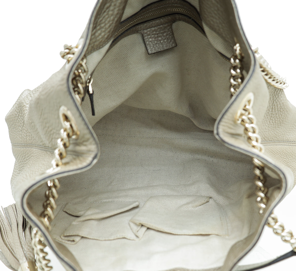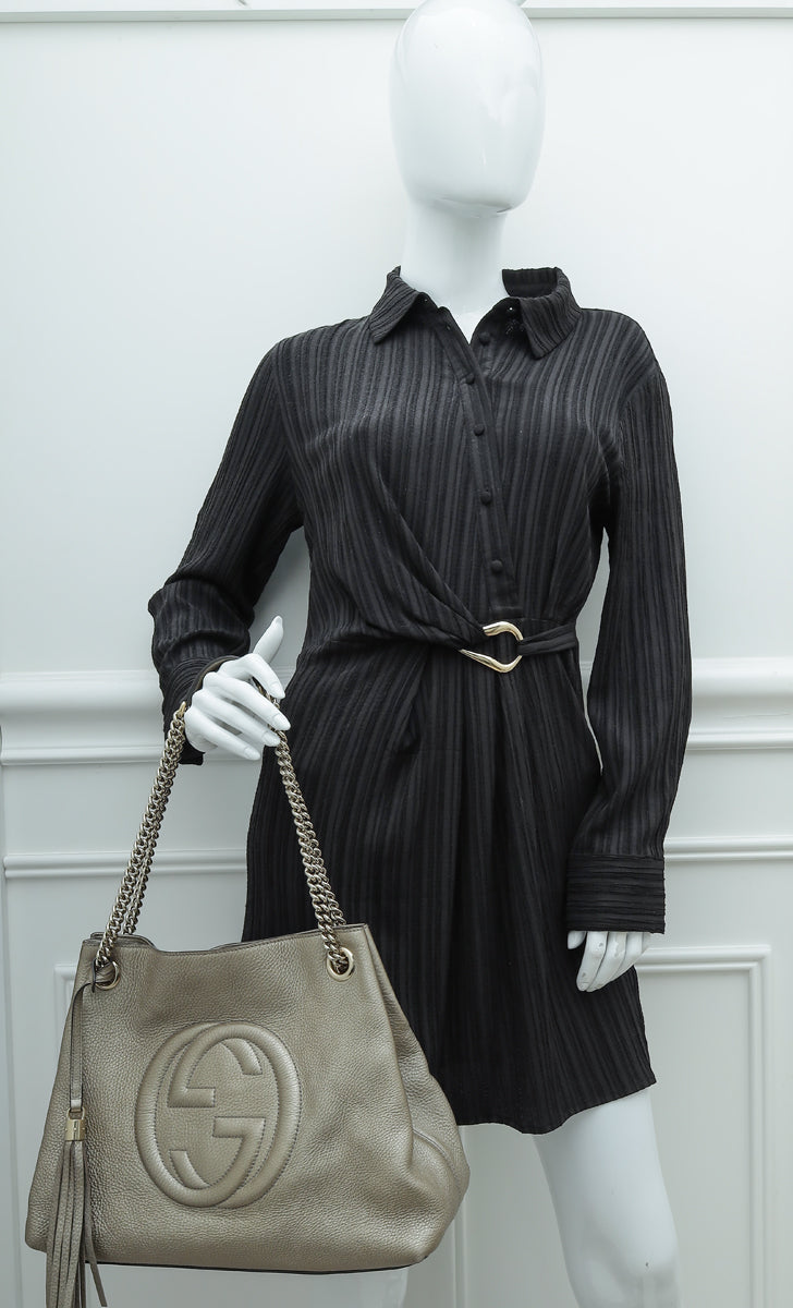 Gucci Metallic Champagne Soho Tassel Tote Medium Bag