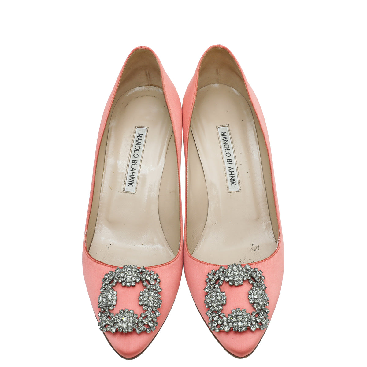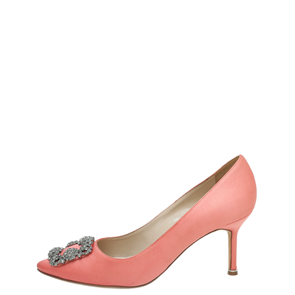 Manolo Blahnik Peach Satin Hangisi Pump 38