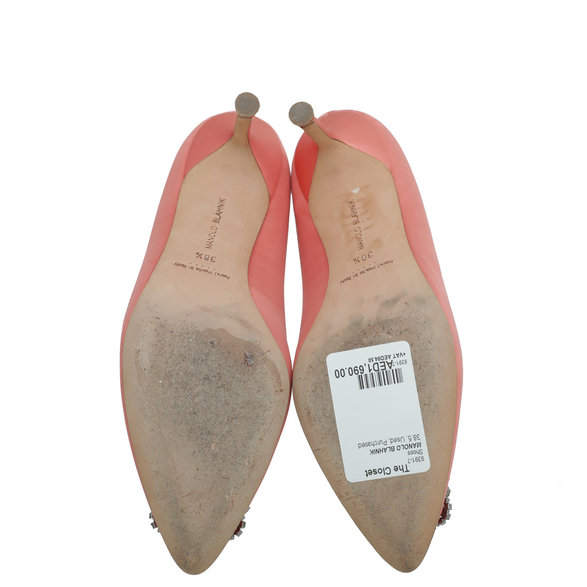 Manolo Blahnik Peach Satin Hangisi Pump 38-Manolo Blahnik-THE CLOSET