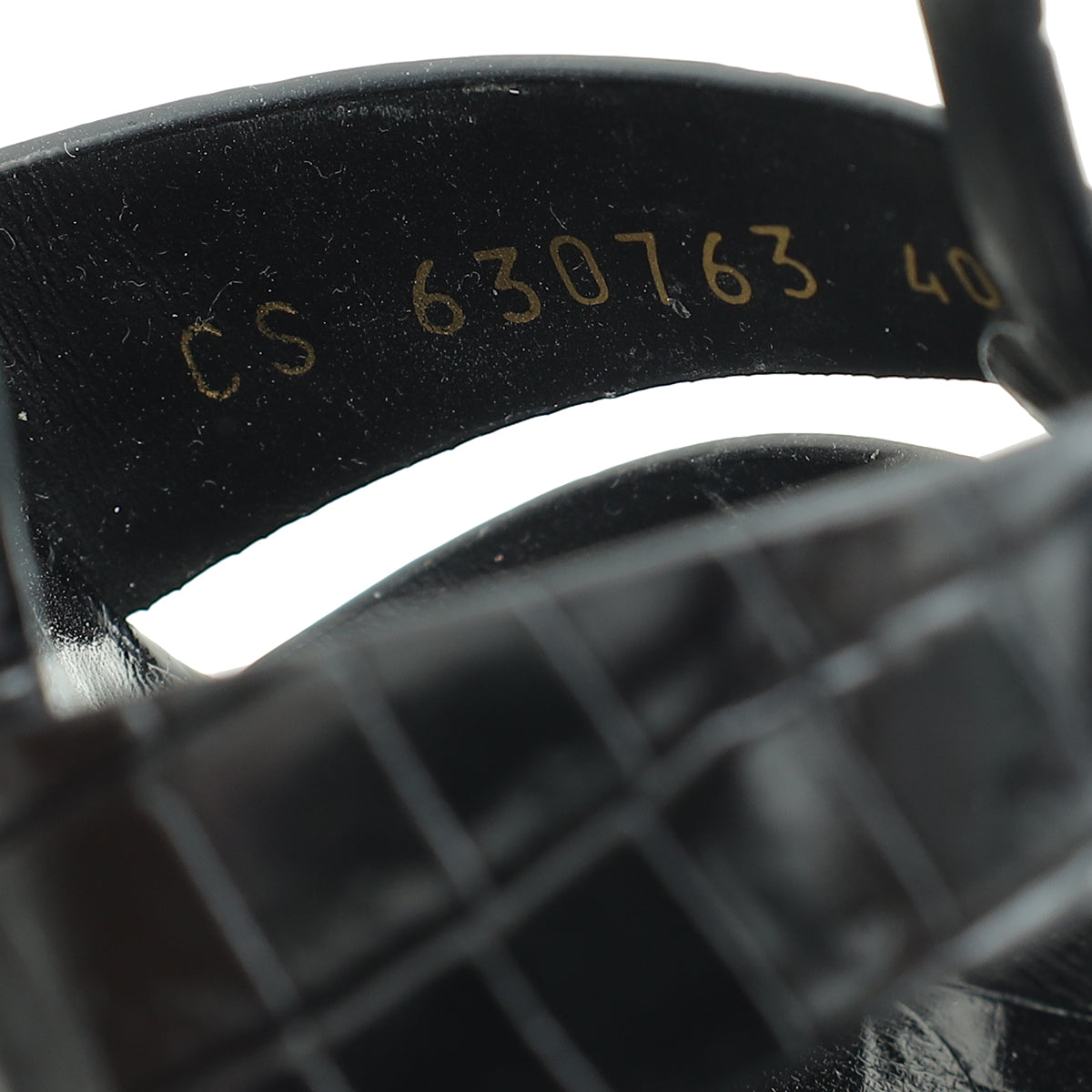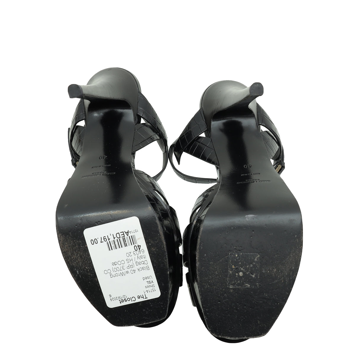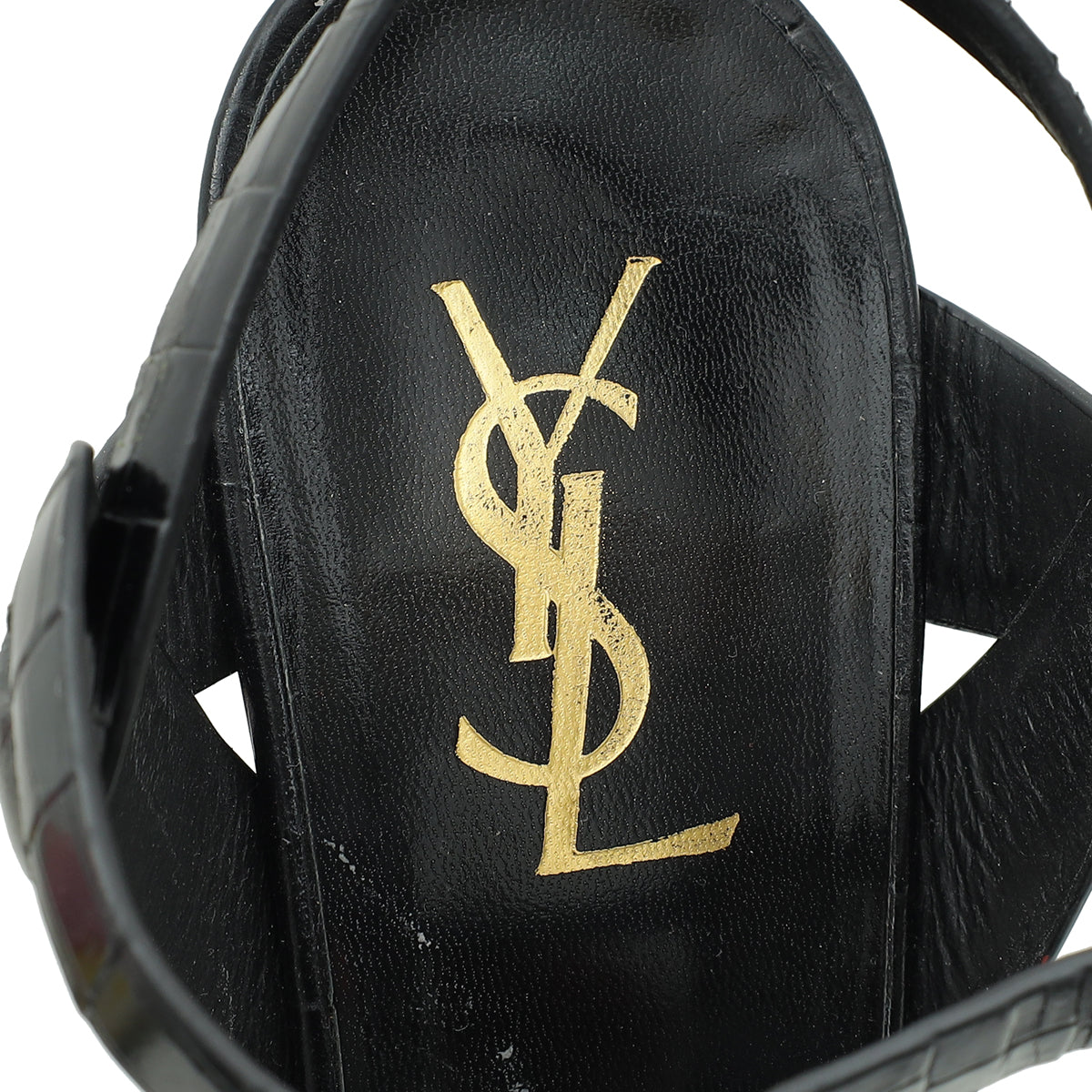 YSL Black Croco Embossed High Heeled Tribute Sandals 40