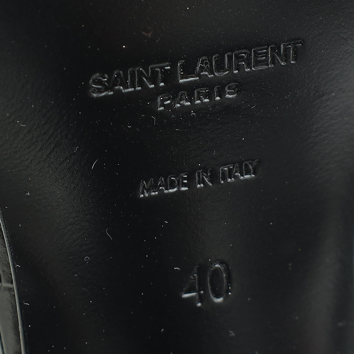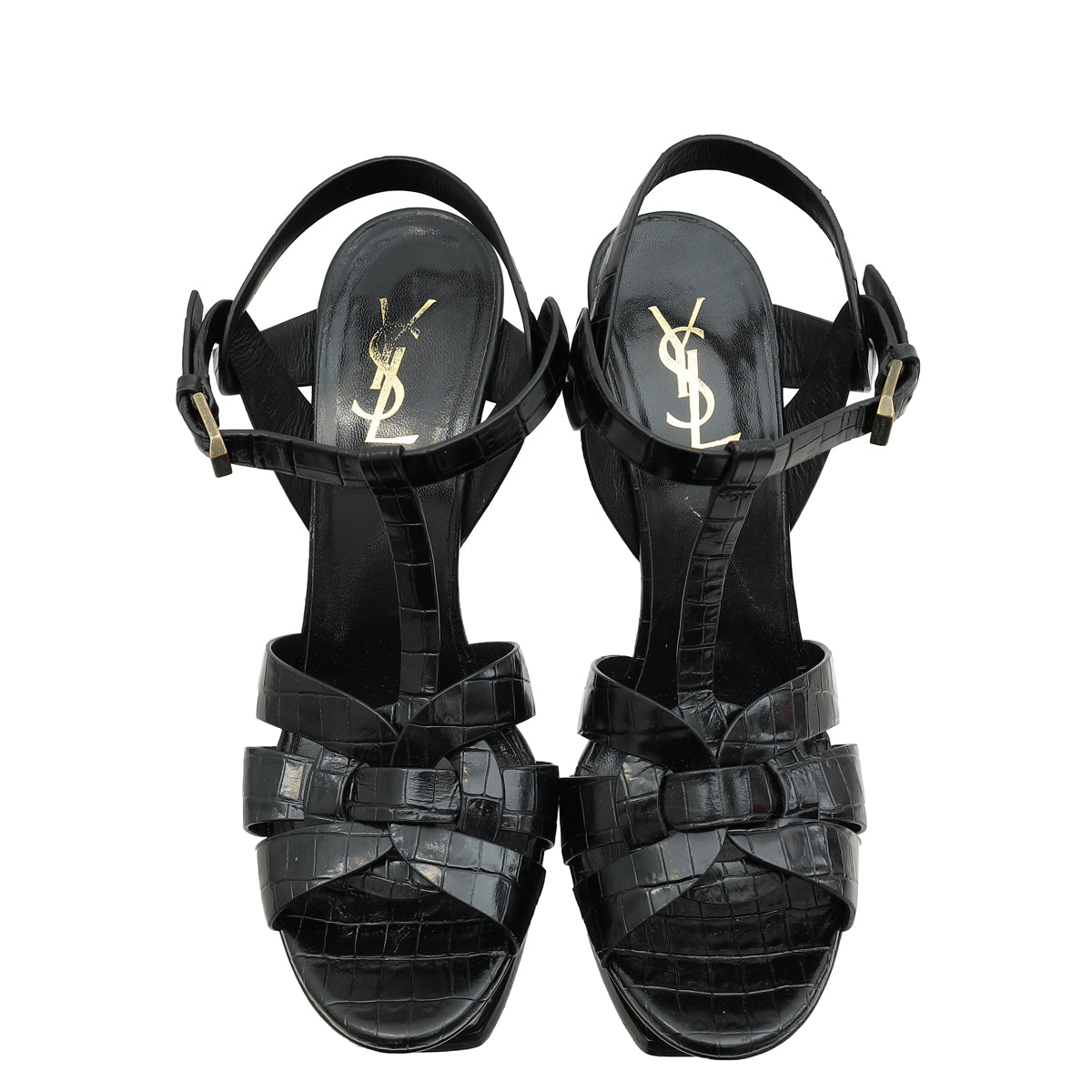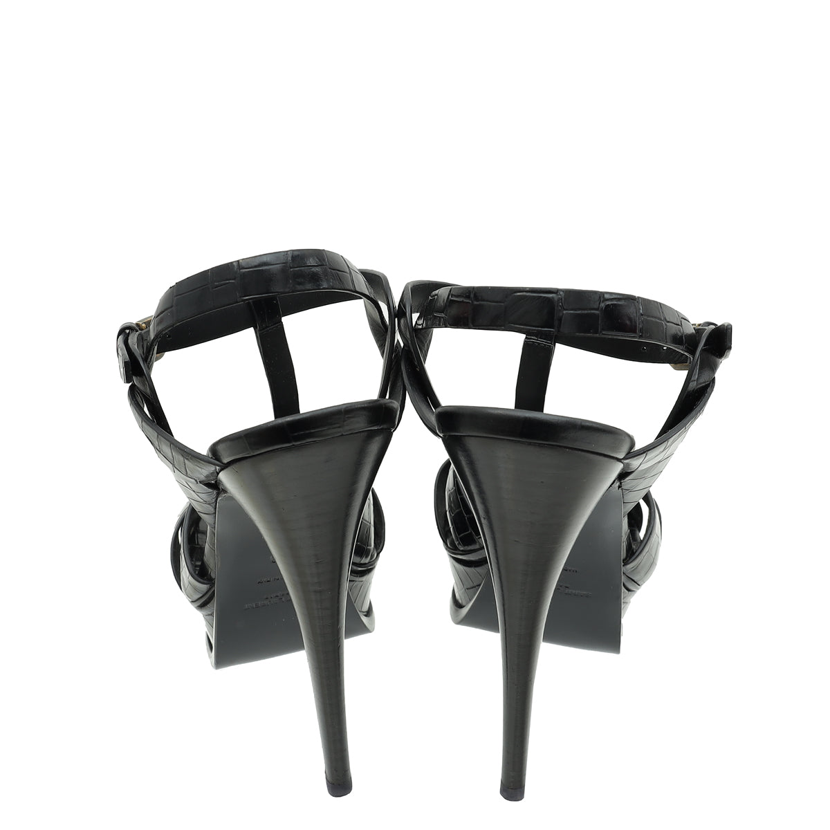 YSL Black Croco Embossed High Heeled Tribute Sandals 40