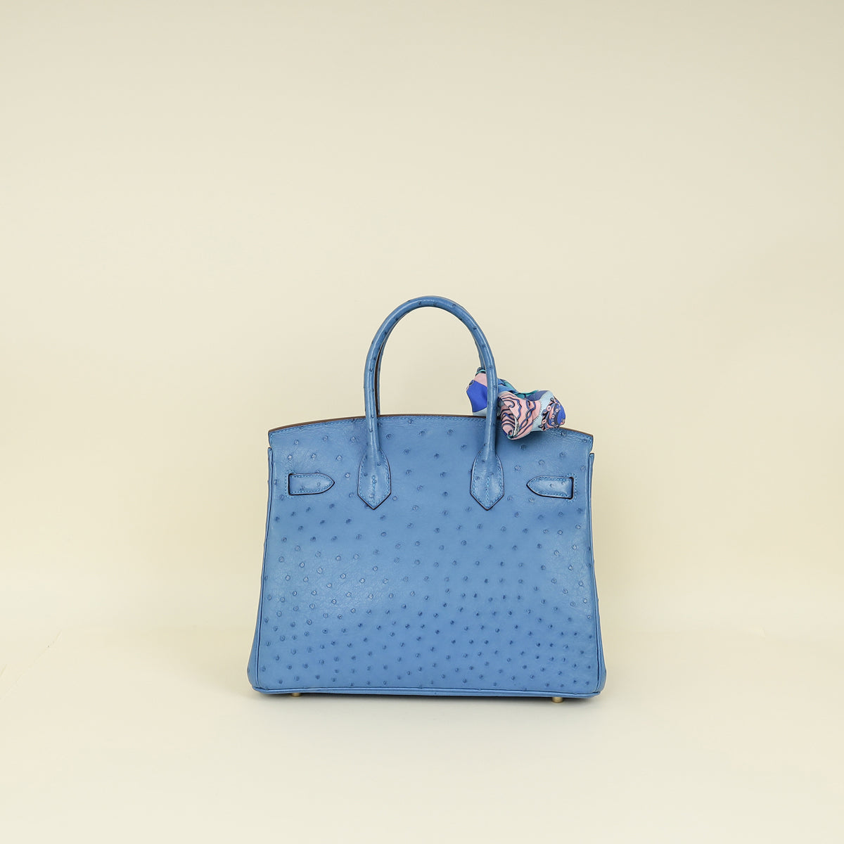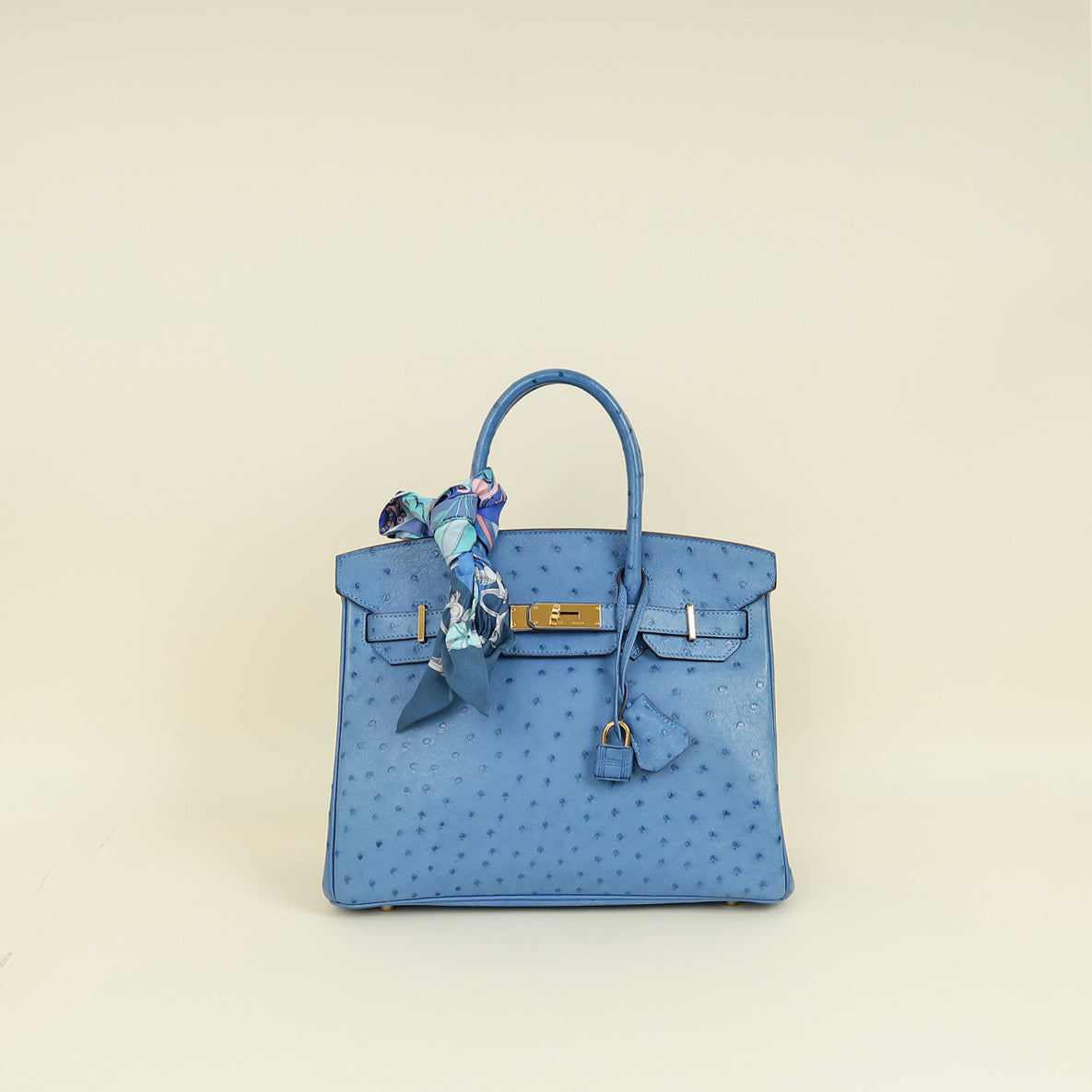Hermes Bleu Mykonos Birkin 30 Ostrich Bag with 2 Twilly
