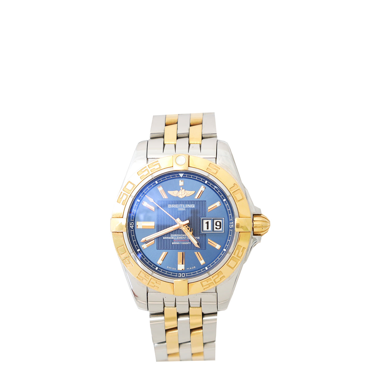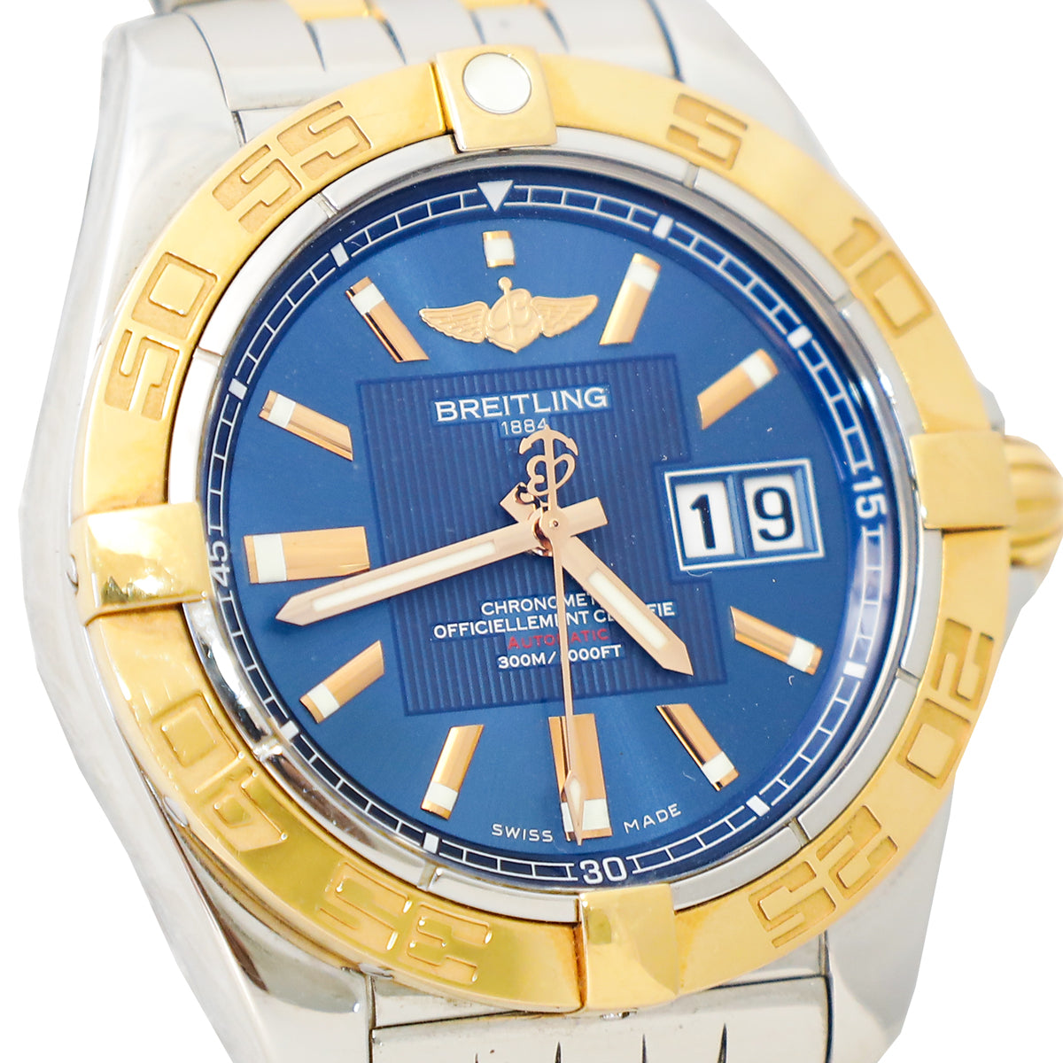 Material: Stainless Steel & Rose Gold Case with Blue Dial and Self-Winding Pilot Bracelet