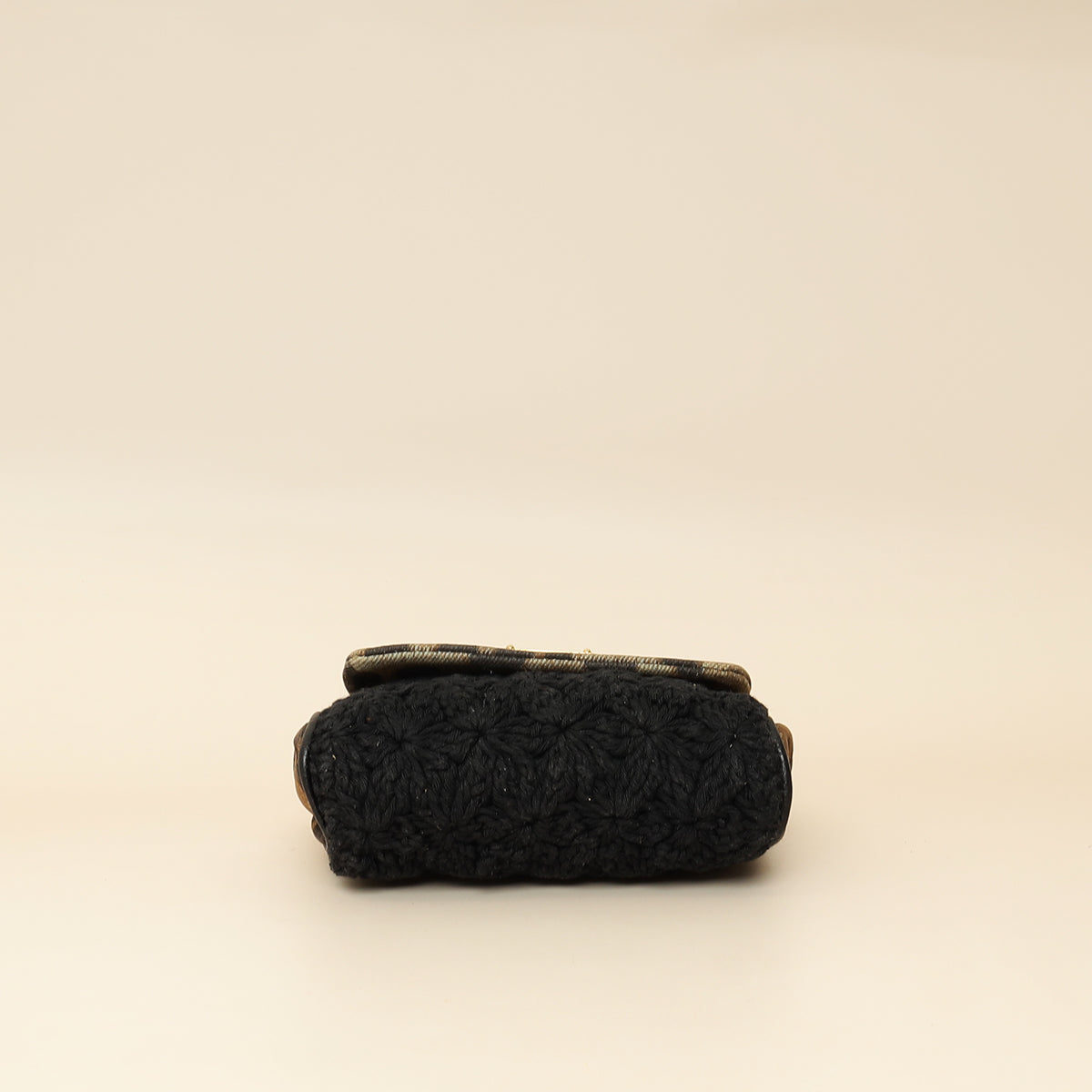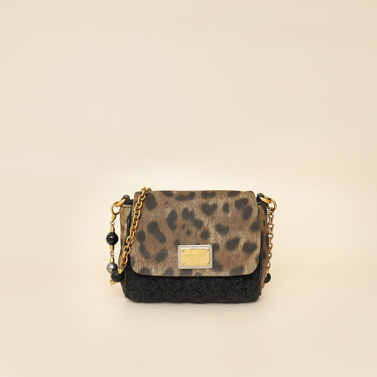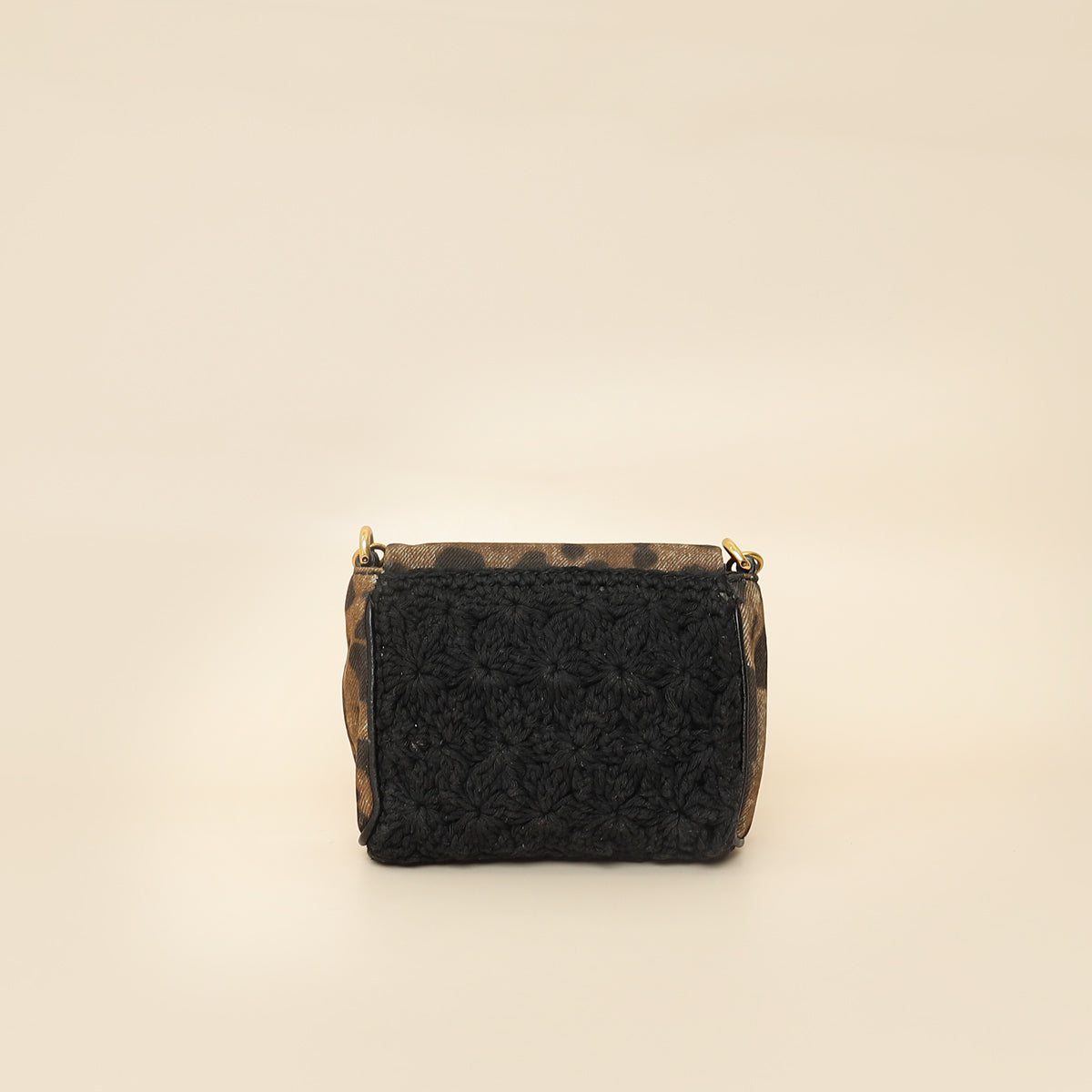 - Material: Brown Leopard Print Denim and Black Crochete