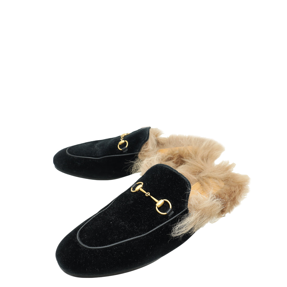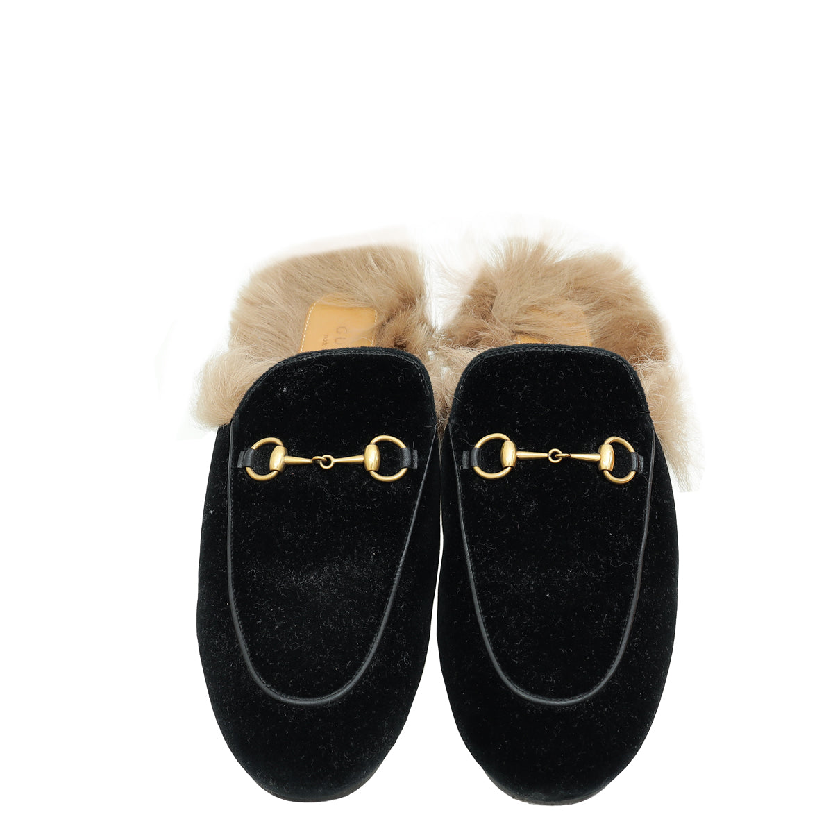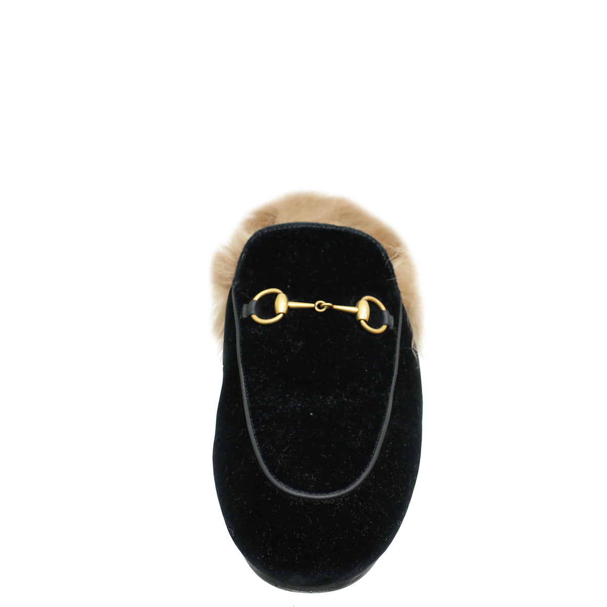 Material: Black Velvet with Fur Trim and Horsebit Detail