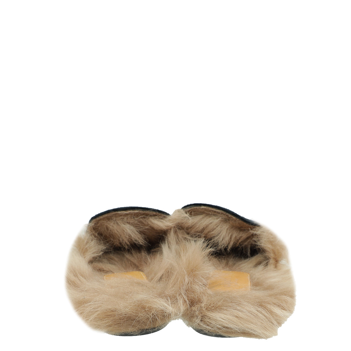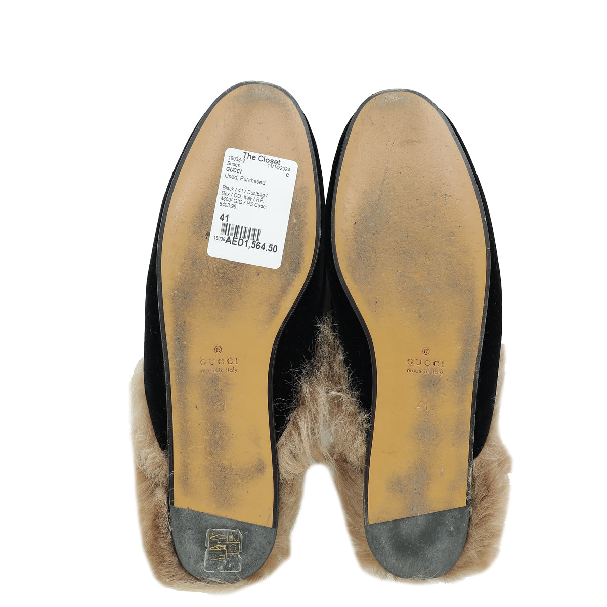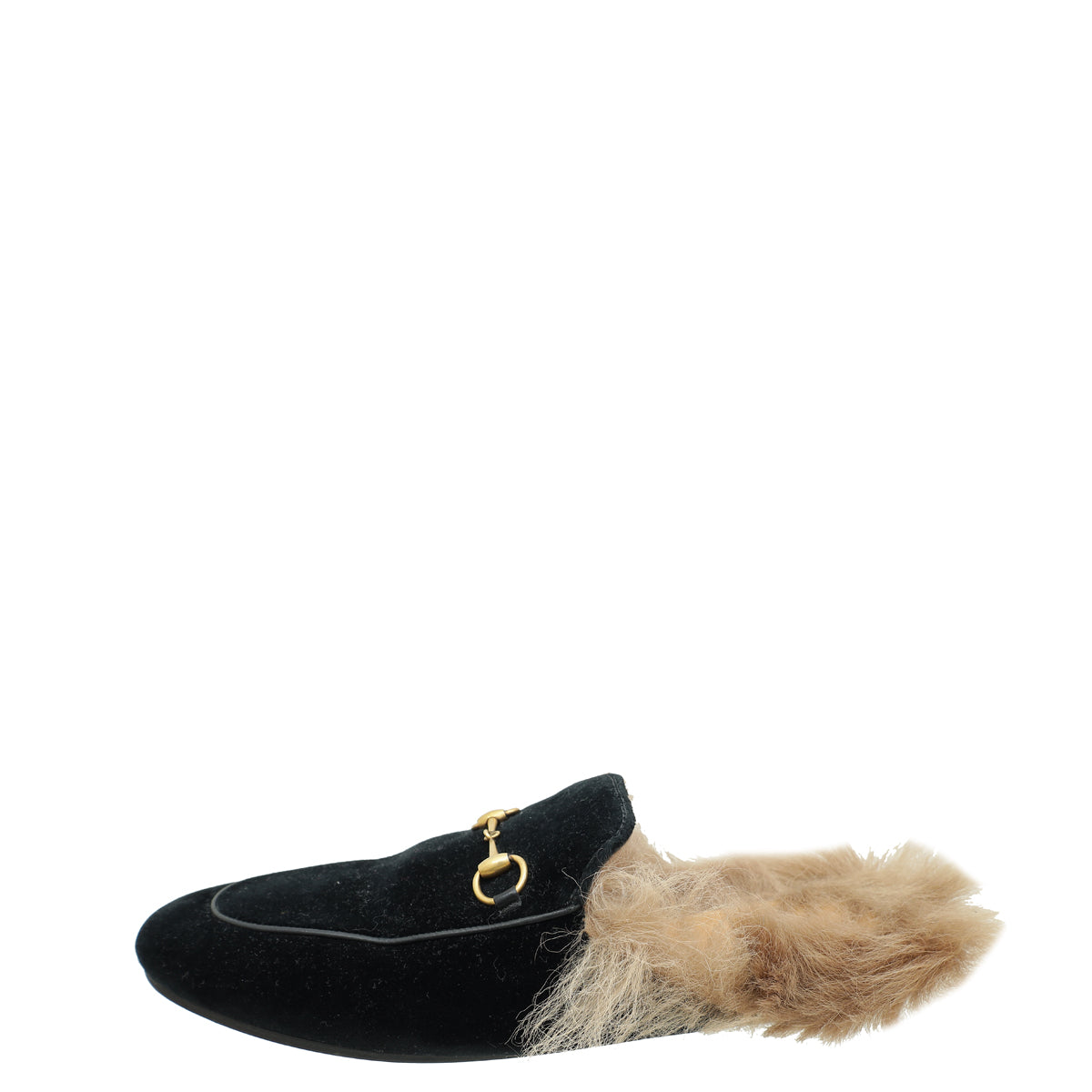 Material: Black Velvet with Fur Trim and Horsebit Detail