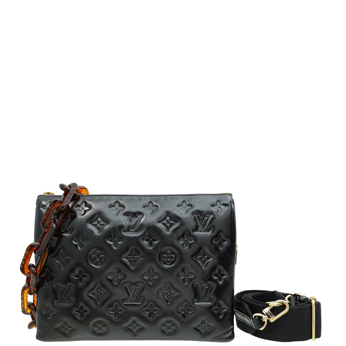 Material: Black Monogram Embossed Glazed Lambskin Leather with Tortoise Chain