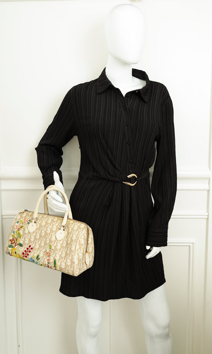 Christian Dior Beige Oblique Floral Boston Bag-Christian Dior-THE CLOSET