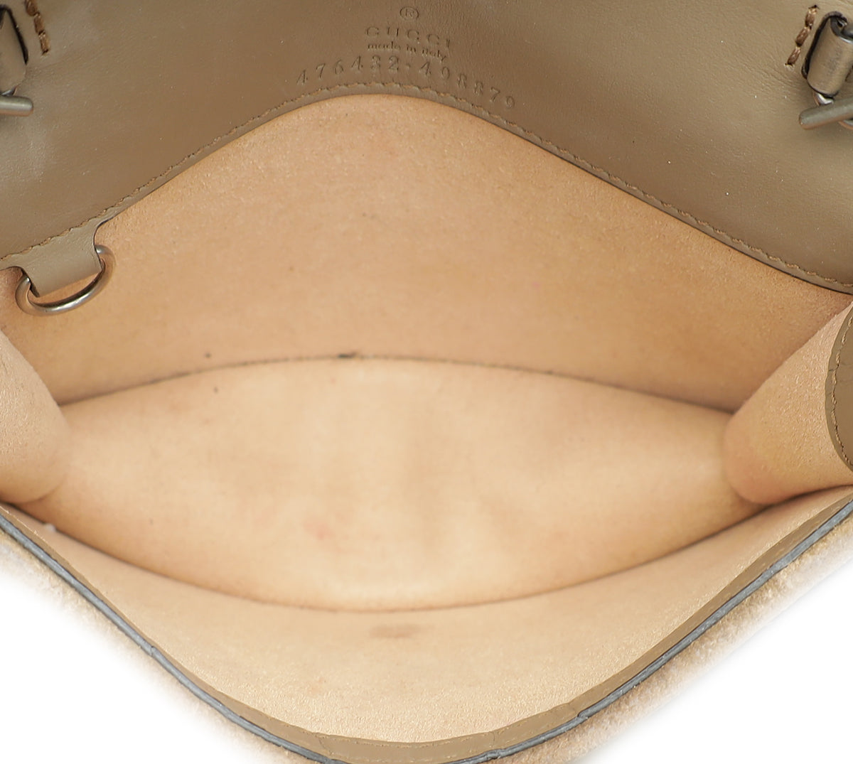 Material: Ebony GG Coated Canvas with Beige Suede Trim