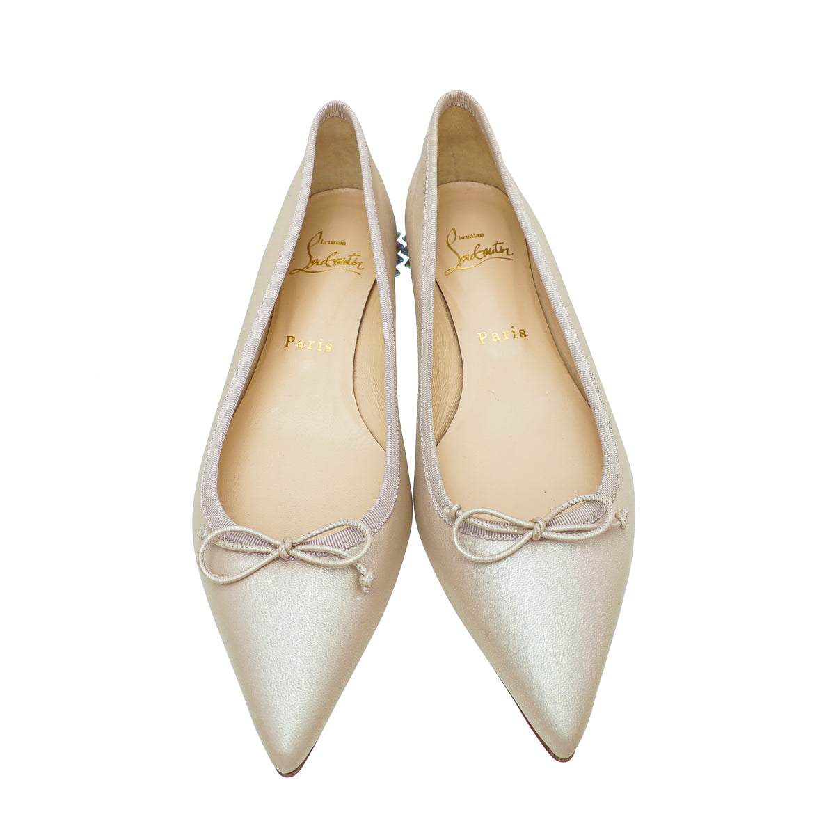 Christian Louboutin Metallic Beige Hall Leather Flat Ballerina 37