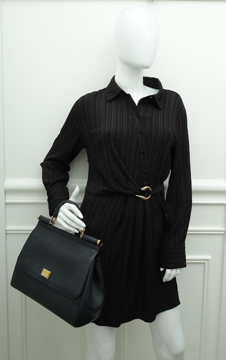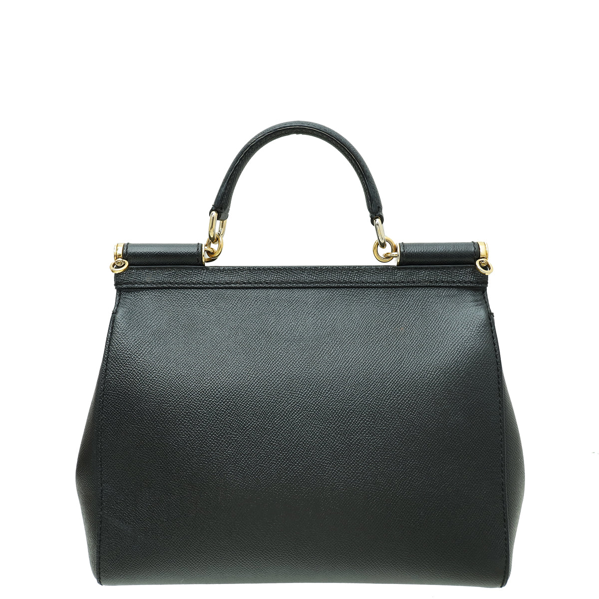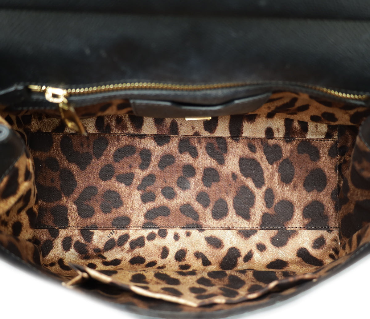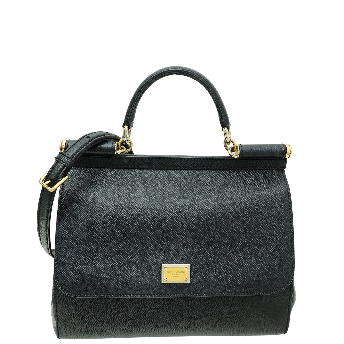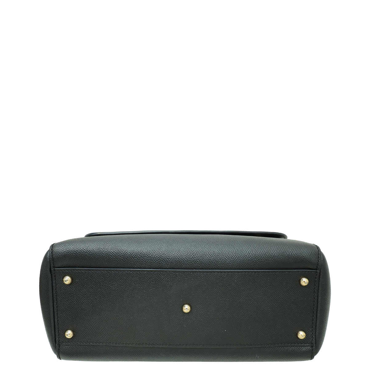 Dolce & Gabbana Black Dauphine Sicily Flap Large Bag