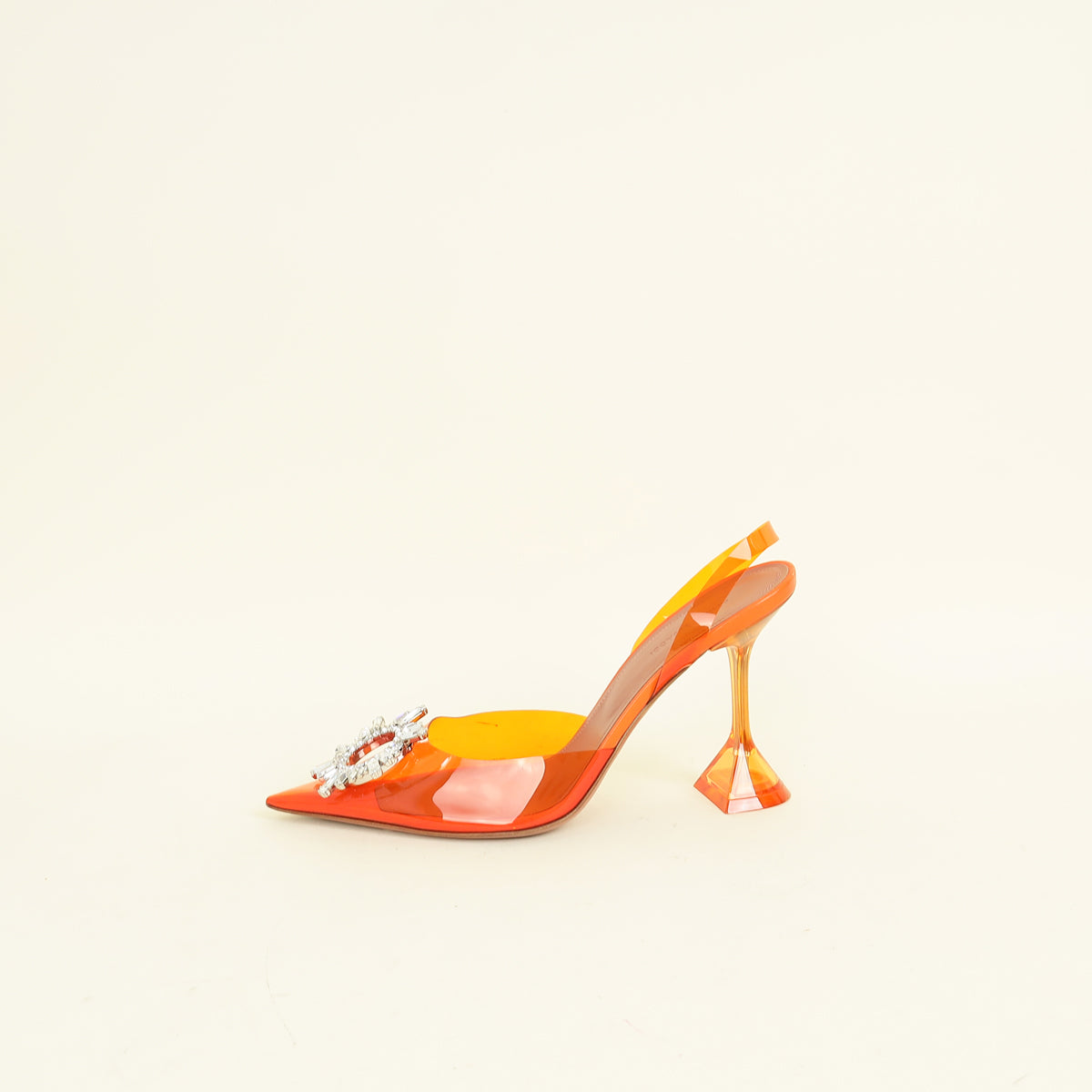 Amina Muaddi Orange Begum Sling Pumps 39.5