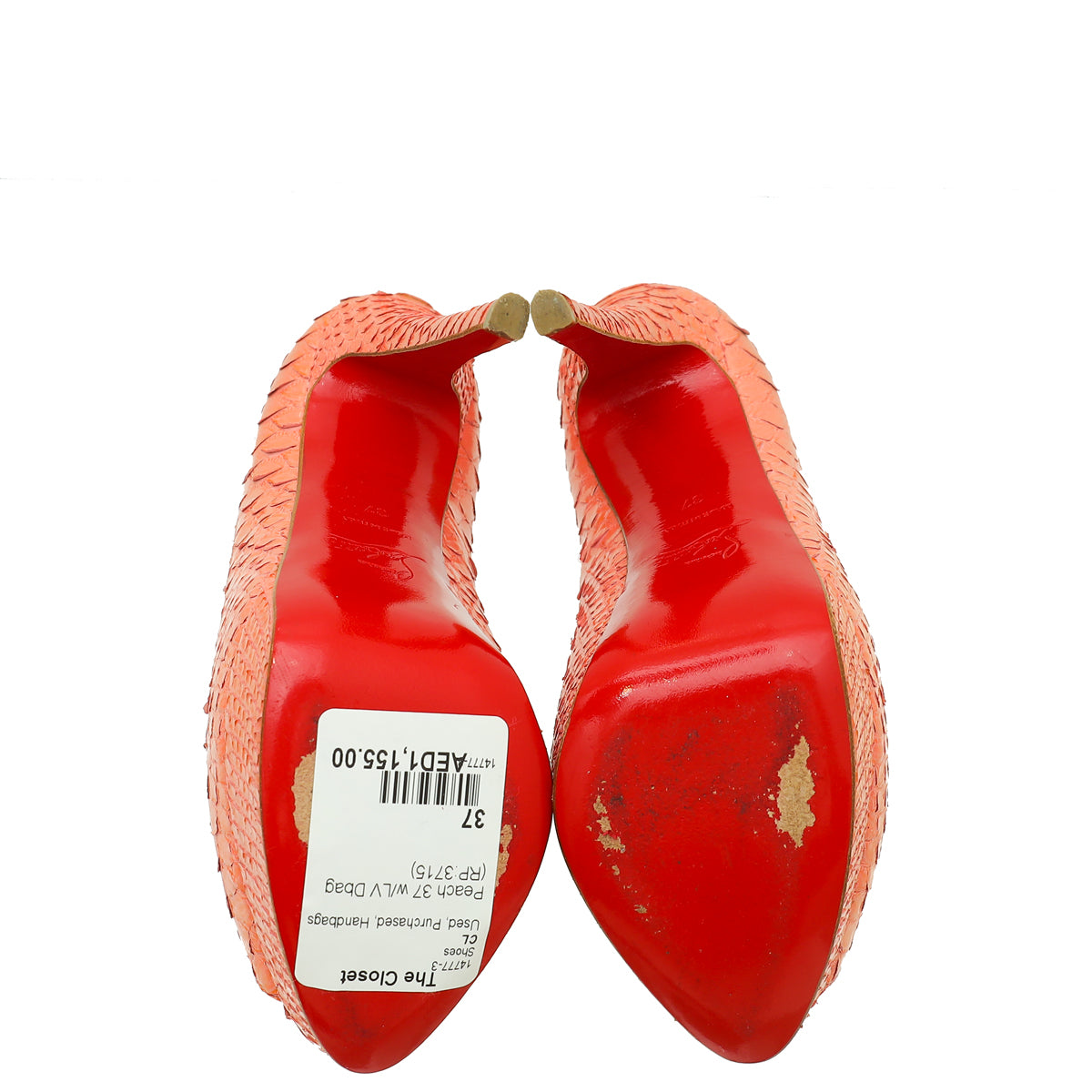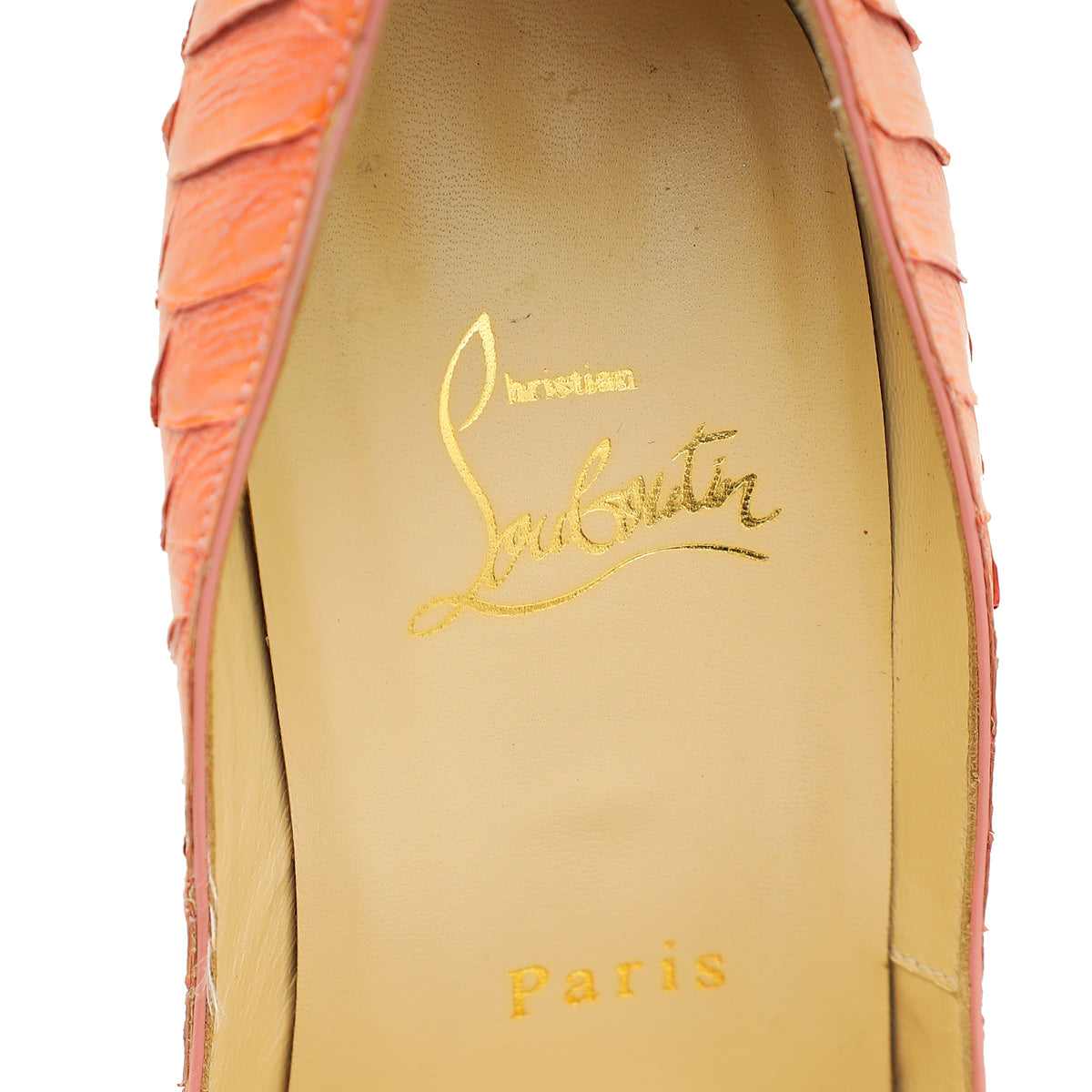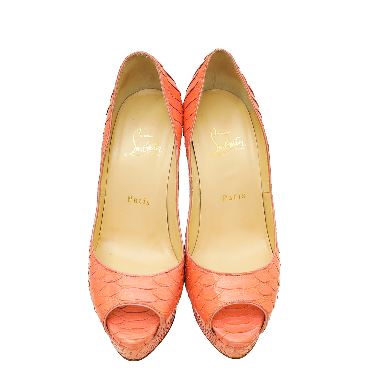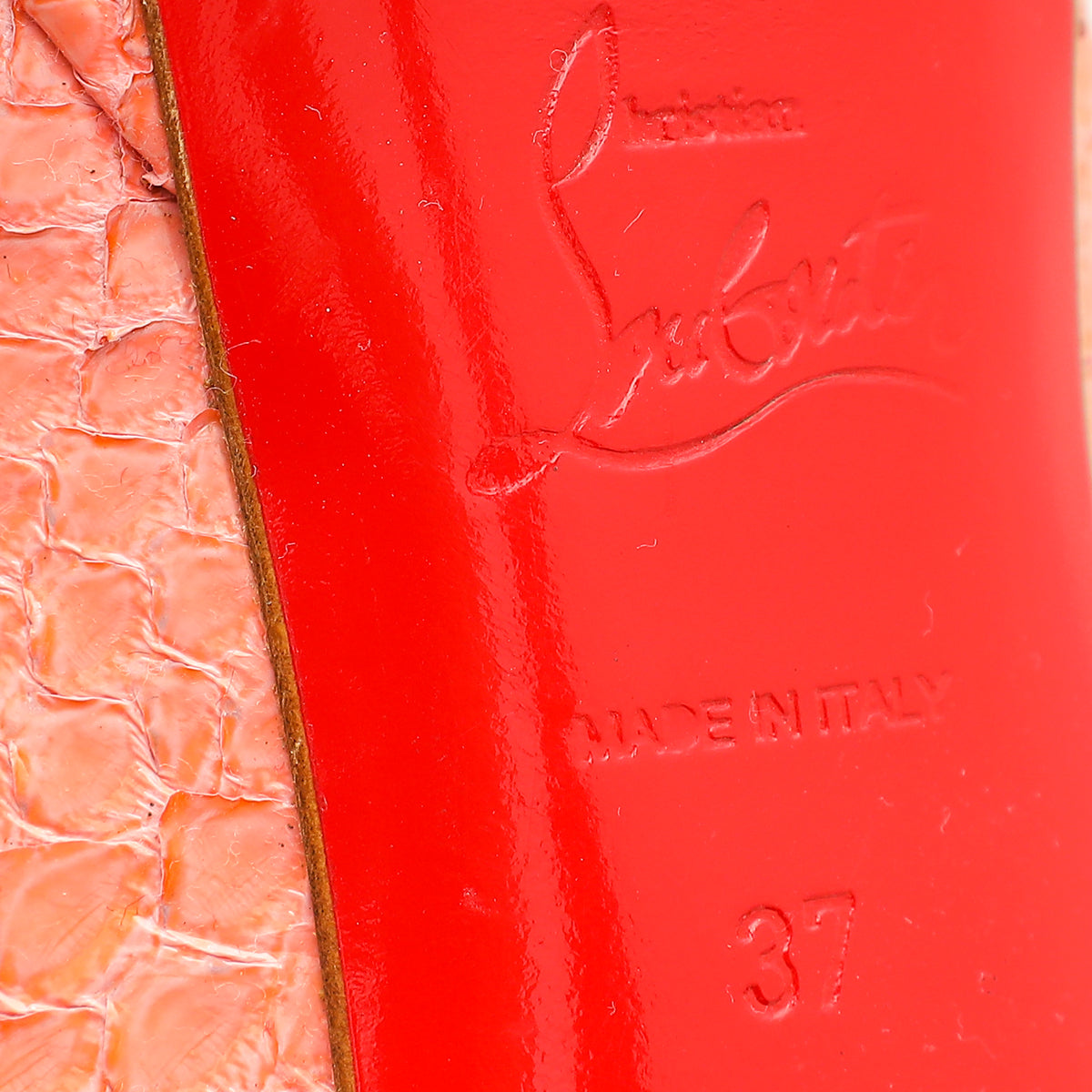 Christian Louboutin Peach Python Lady Peep 140 Pump 37