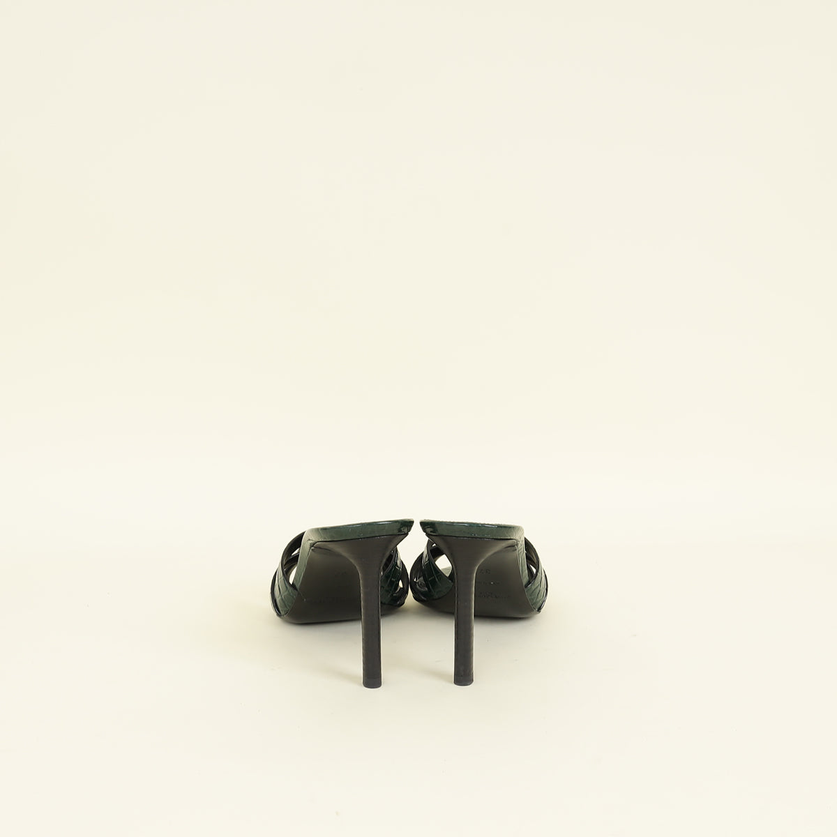 YSL Emerald Green Tribute Croco Embossed Heeled Mules 37