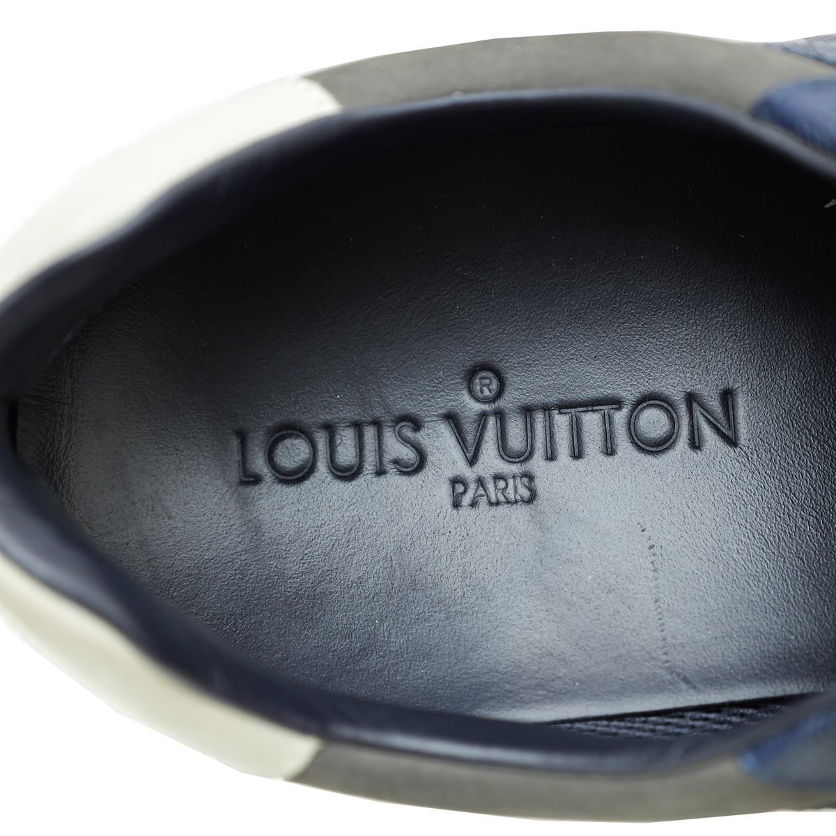 - Material: Navy Blue Suede, Damier Canvas, Leather and White Leather Trim