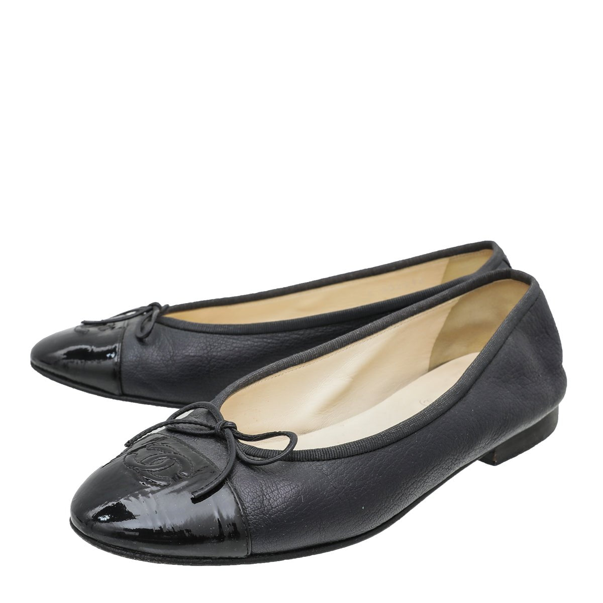 Chanel Black CC Cap Toe Bow Flat Ballerina 37.5