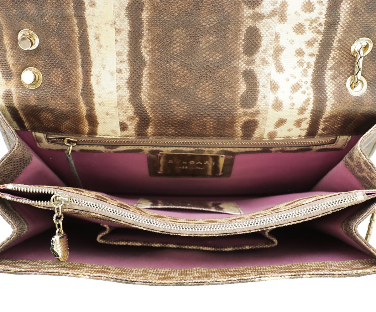 Bvlgari Brown Karung Skin Serpenti Forever Large Bag