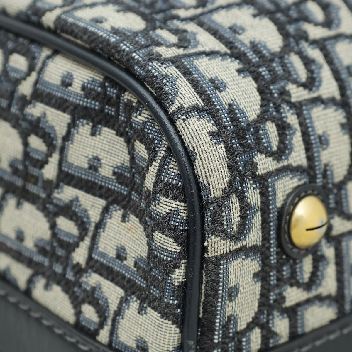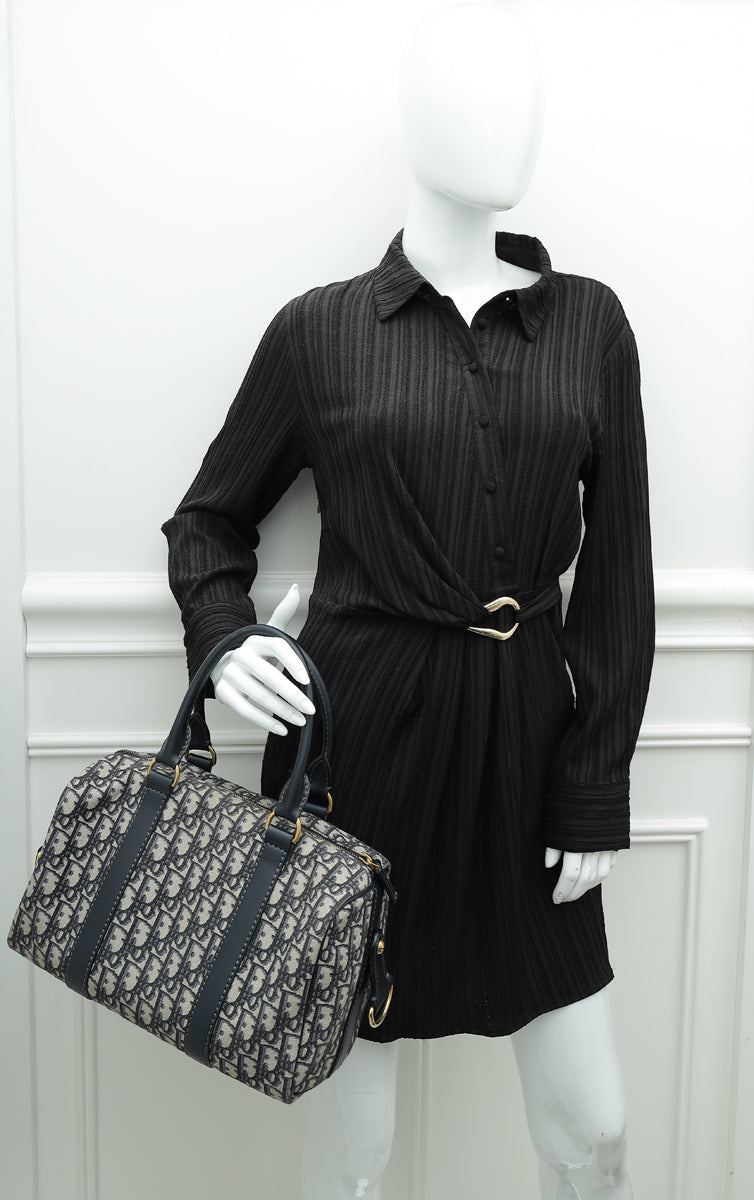 Christian Dior Navy Blue Oblique Jacquard Boston Bag