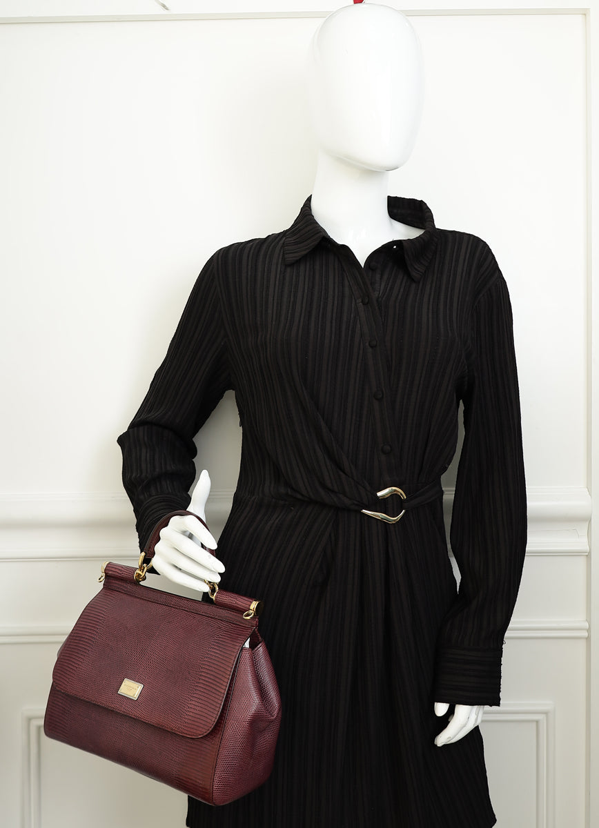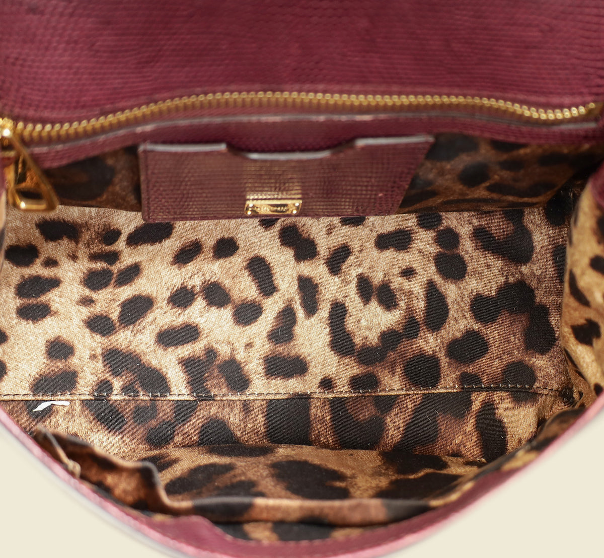 Dolce & Gabbana Burgundy Sicily Iguana Print Medium Bag