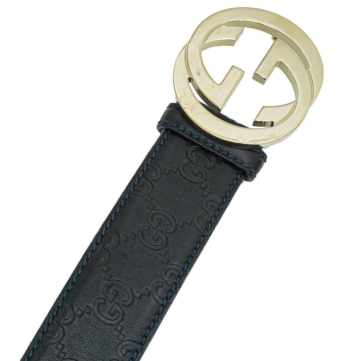 Gucci Black Guccissima Interlocking G Buckle Belt 34-Gucci-THE CLOSET