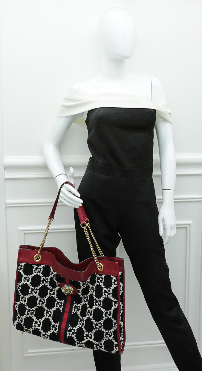 Gucci Tricolor Rajah Jacquard Tweed Tote Large Bag