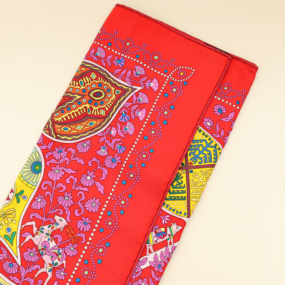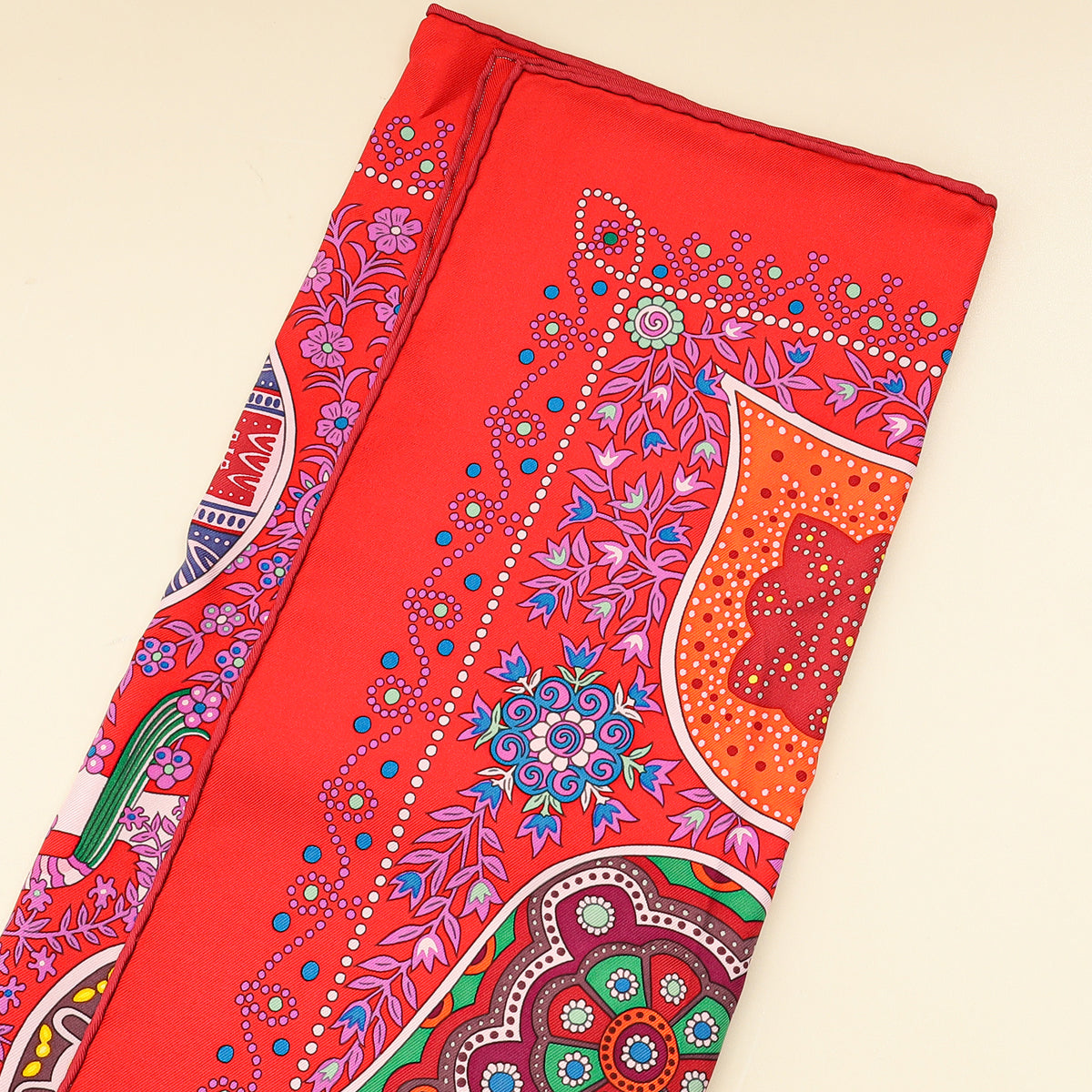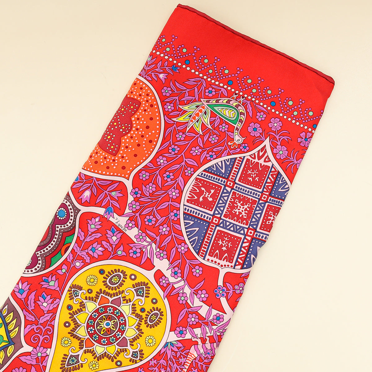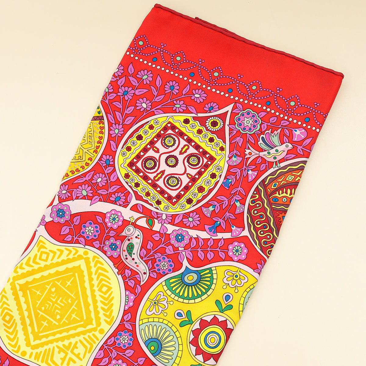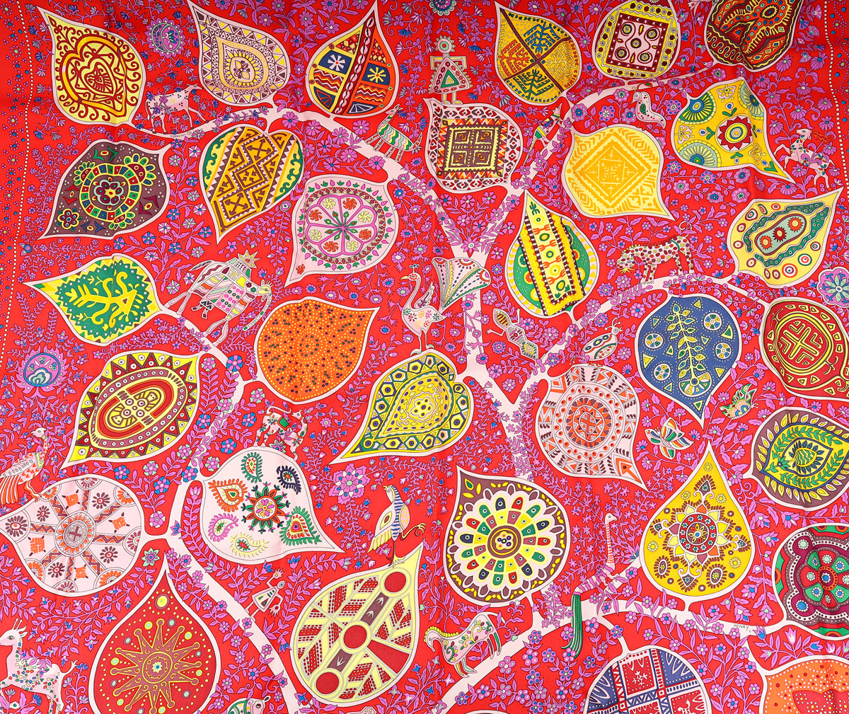 Hermes Rouge Multicolor L'arbre de Vie Shawl Scarf 90