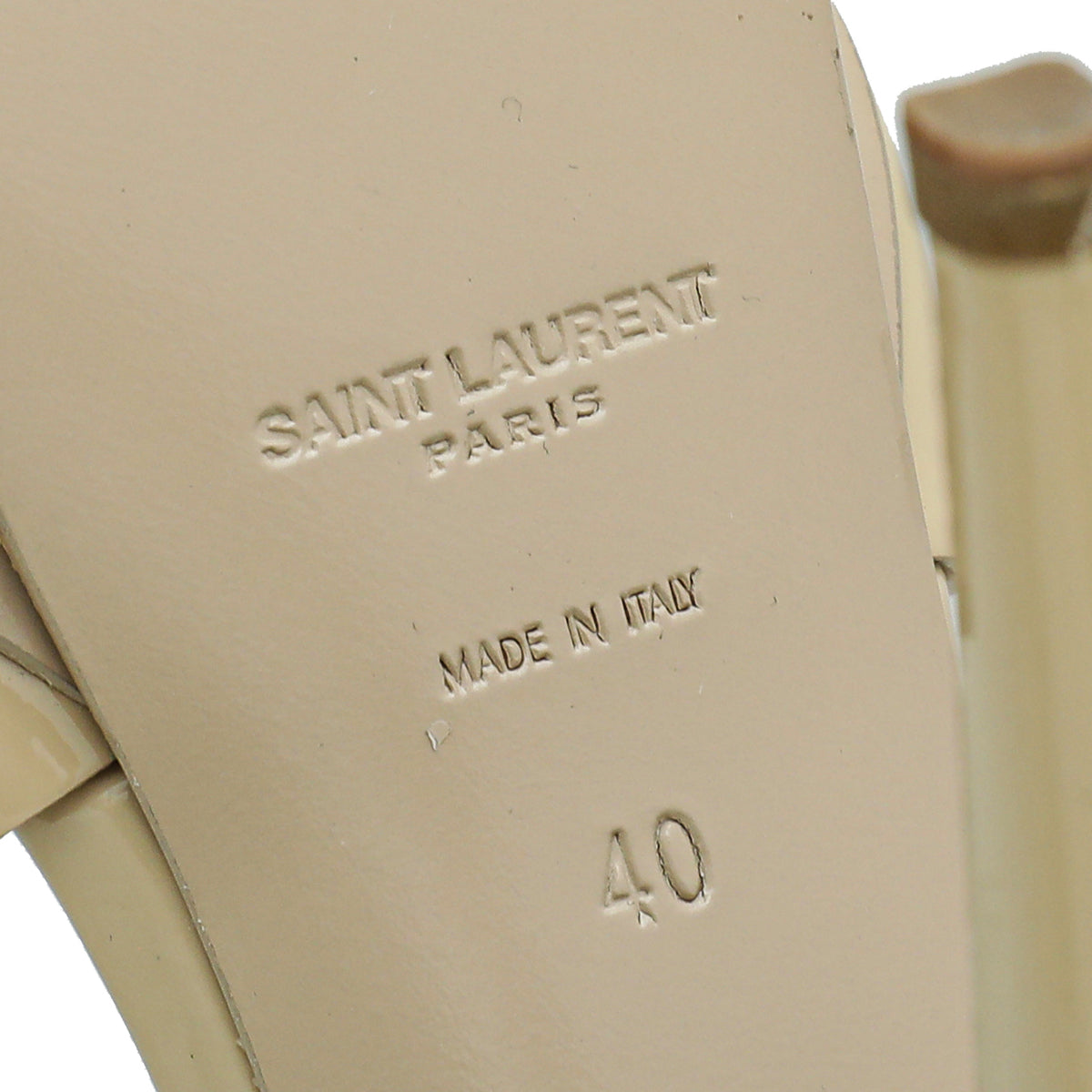 - Material: Beige Patent Leather