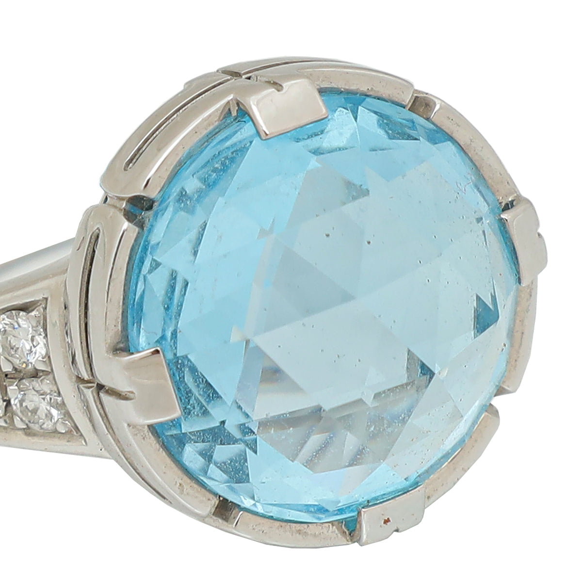 Material: 18K White Gold with Blue Topaz Stone and Diamonds (0.32 Carats)