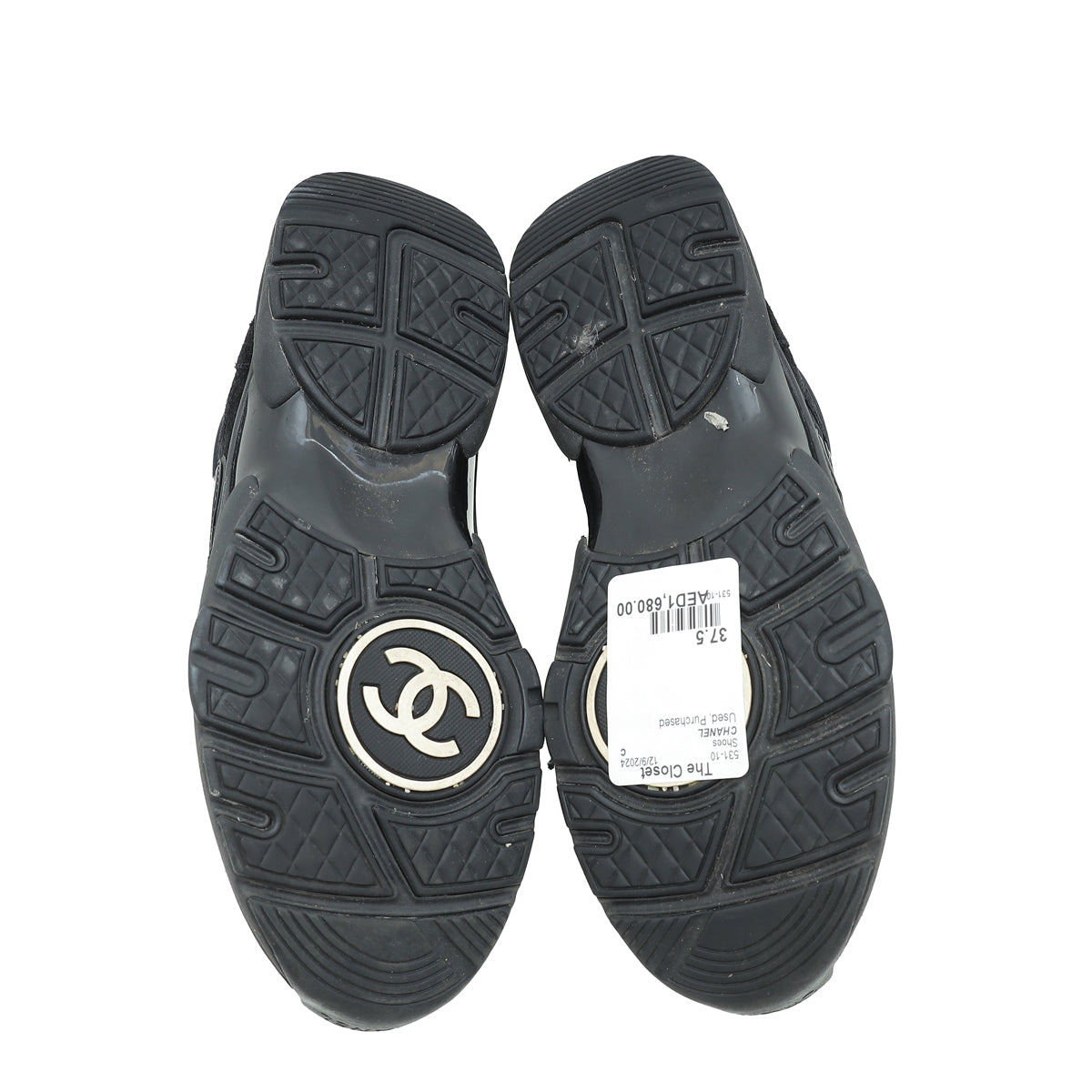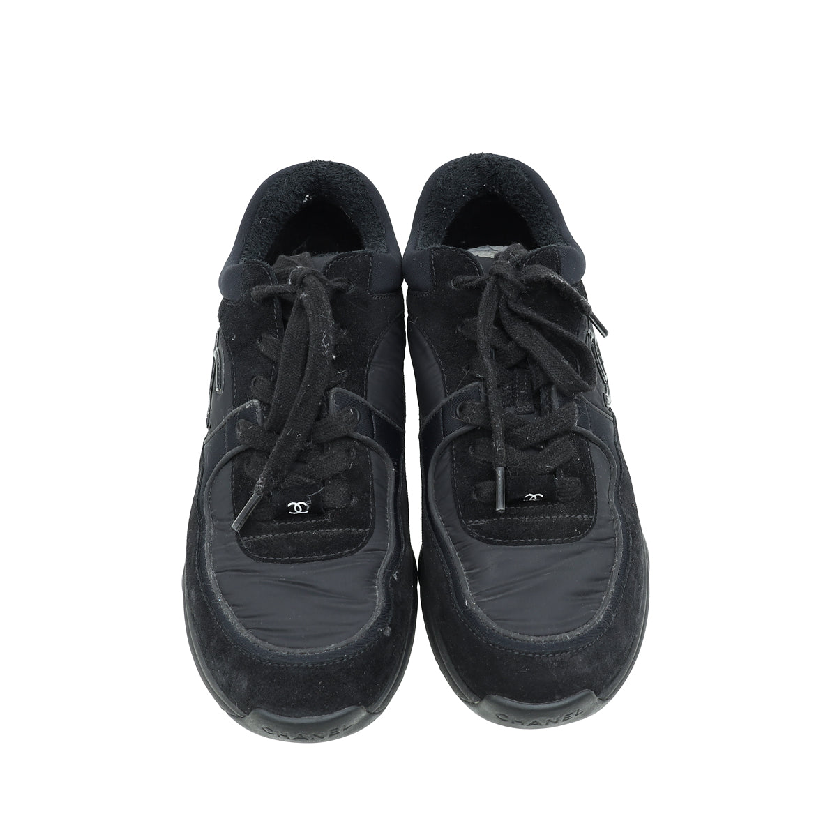 Chanel Black CC Lace Up Trainer Sneakers 37.5-Chanel-THE CLOSET