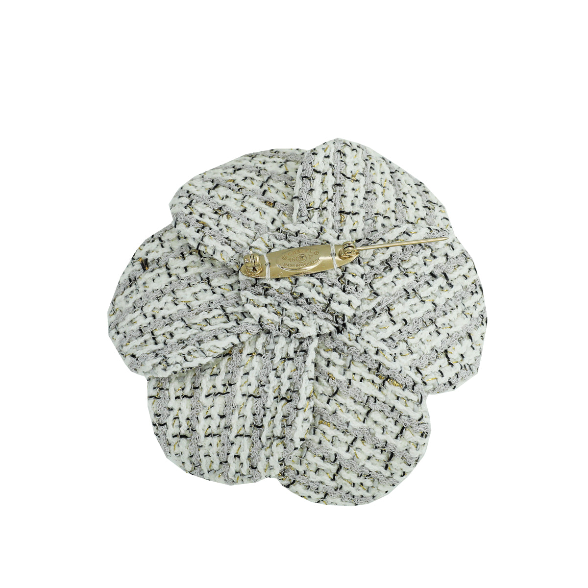 Chanel Tricolor CC Tweed Camellia Flower Brooch Large