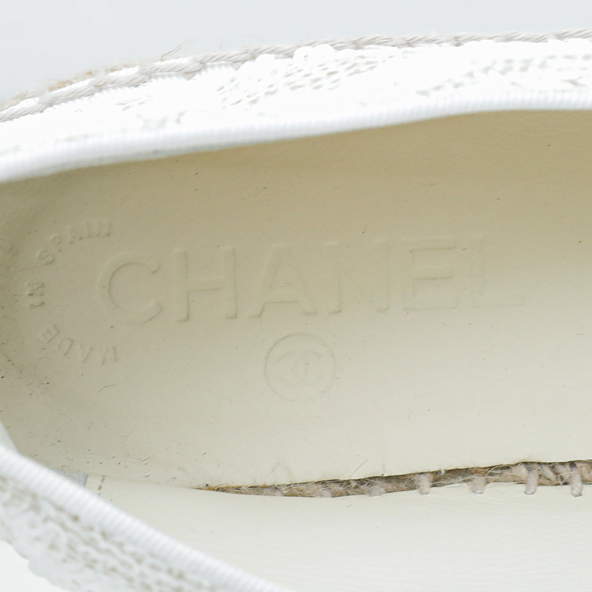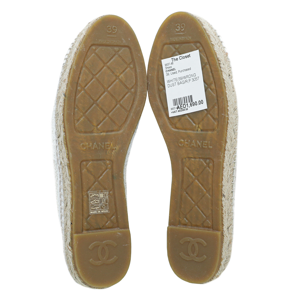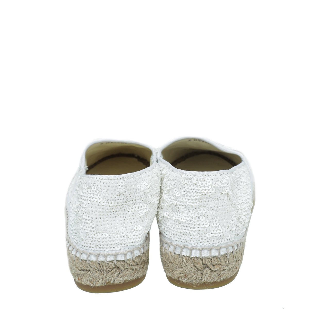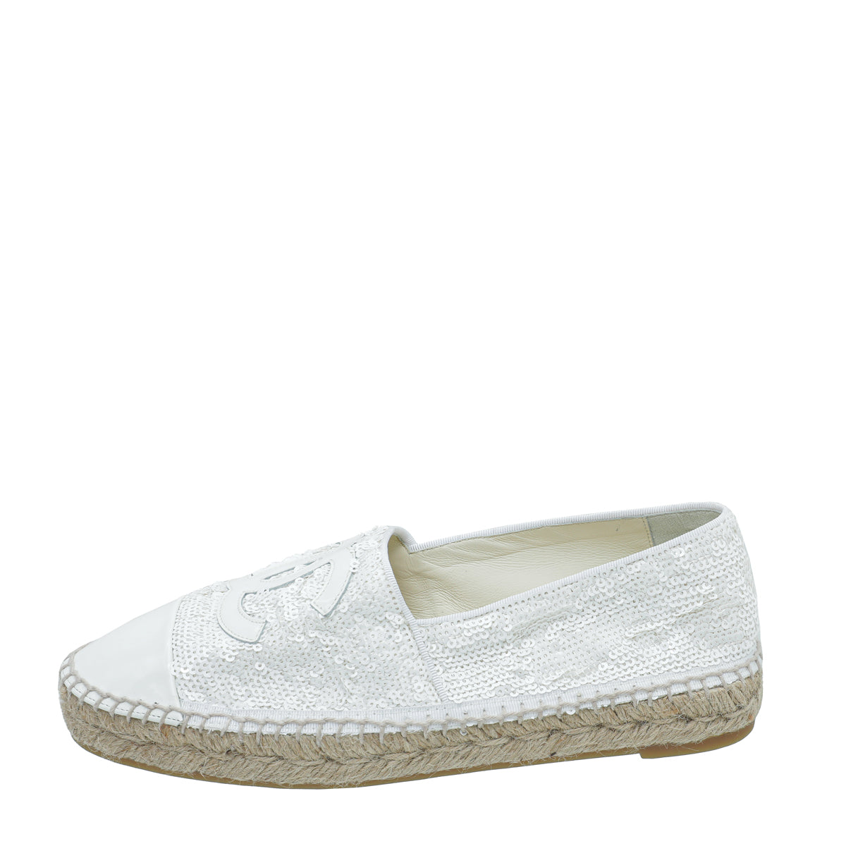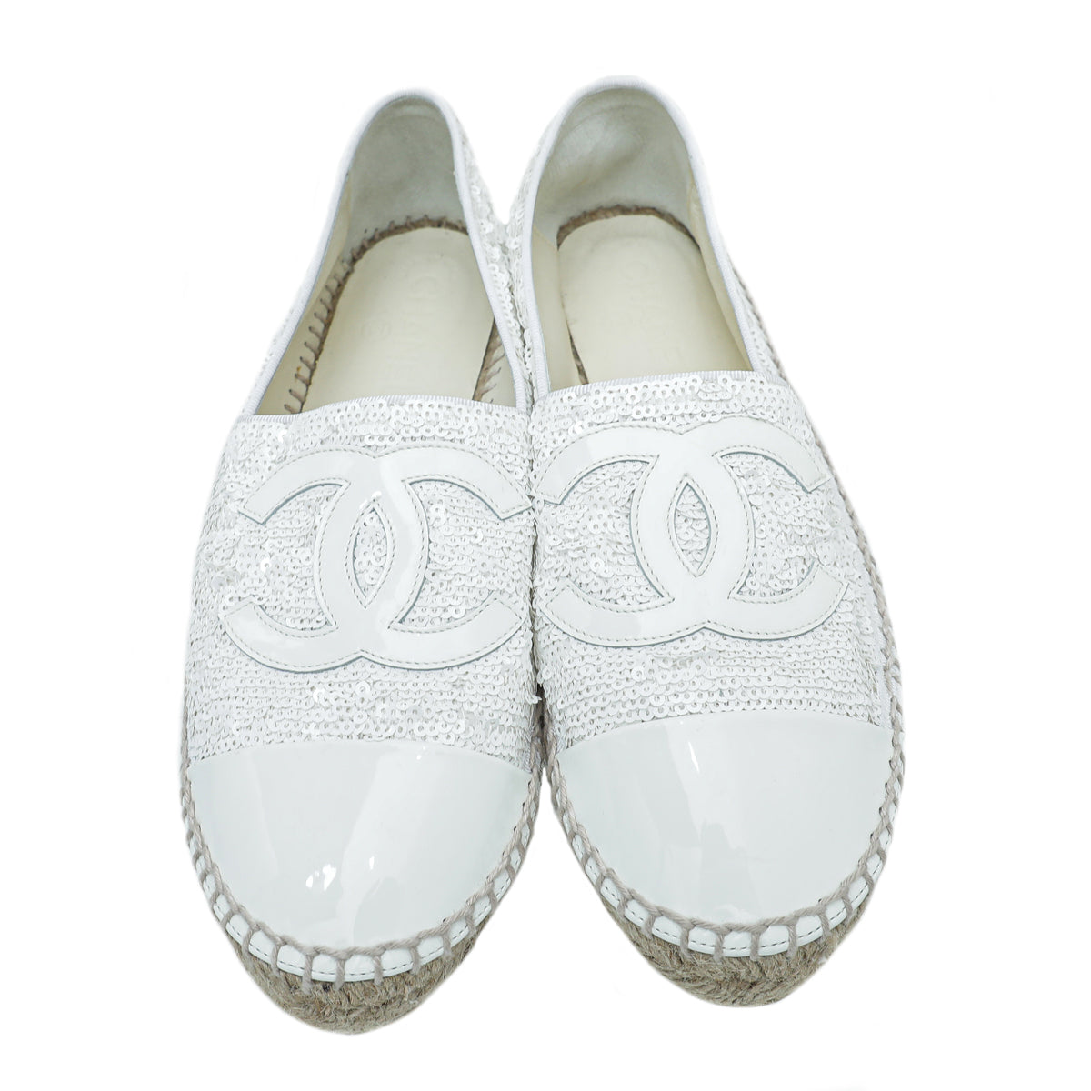 Chanel White CC Cap Toe Patent Sequin Espadrille 39