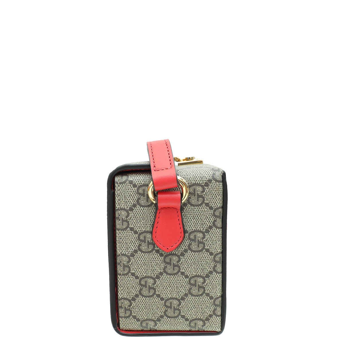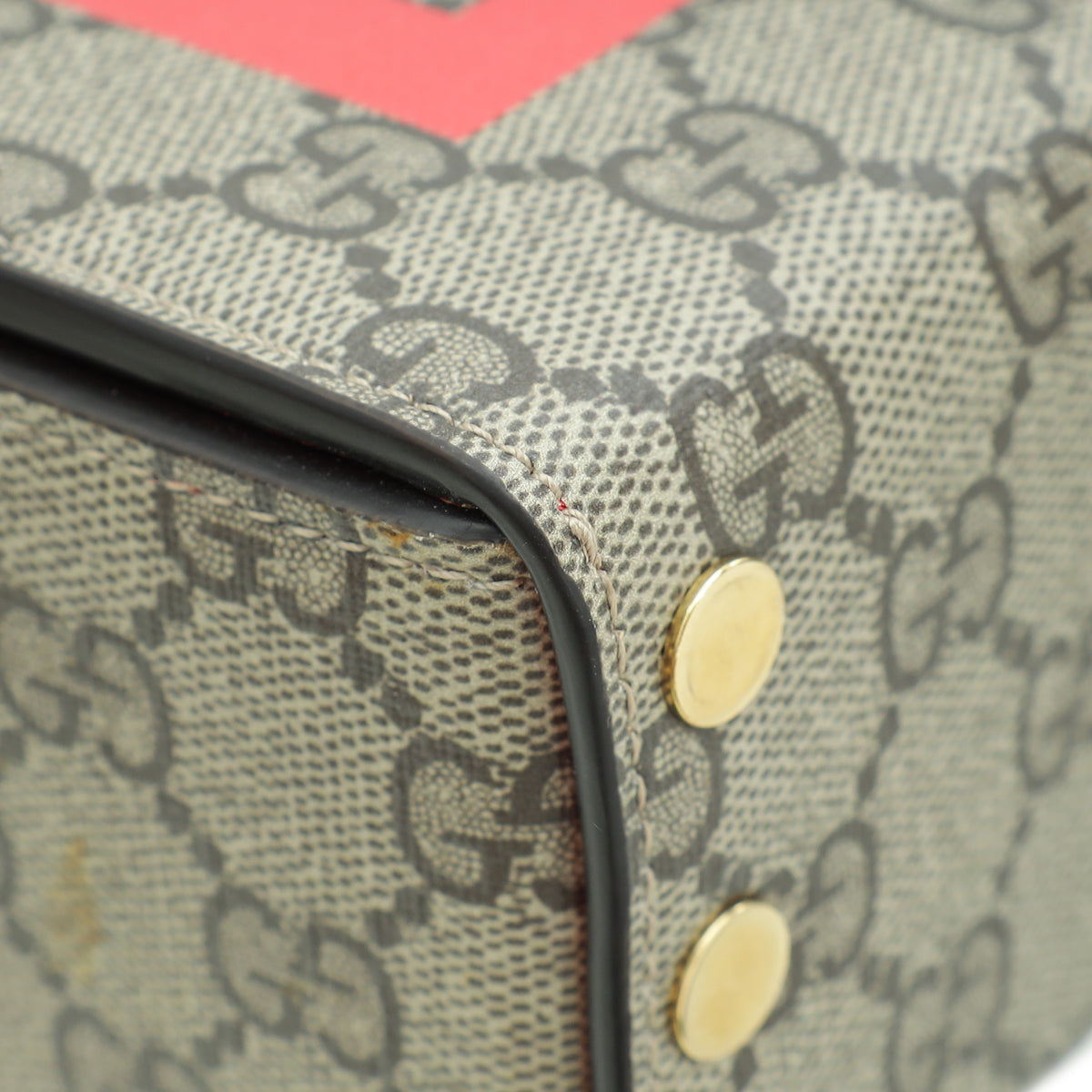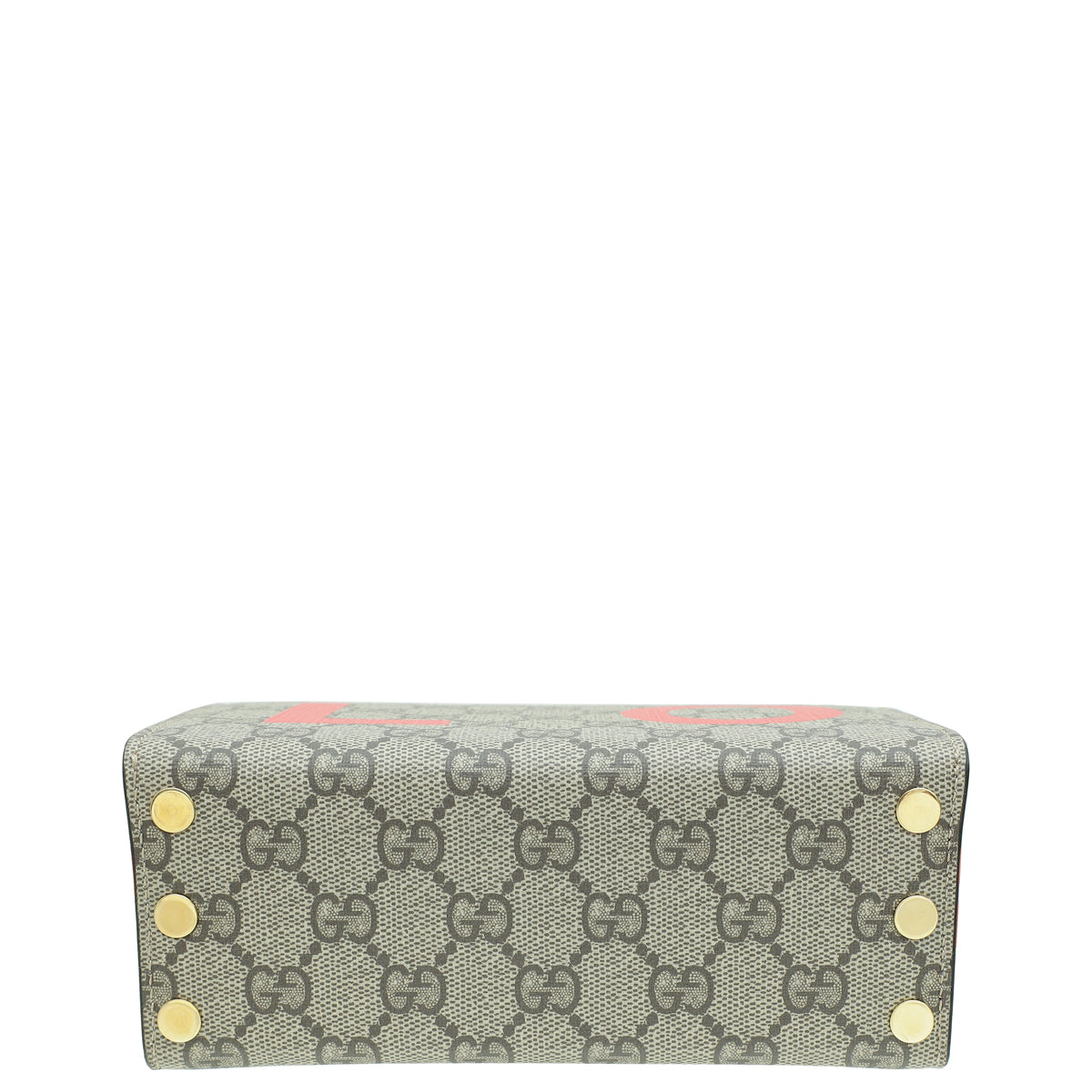 Material: Ebony/New Geranium GG Coated Canvas and Leather Trim with "LOVE" Letters Motif Overlay