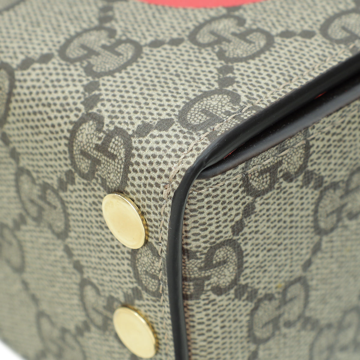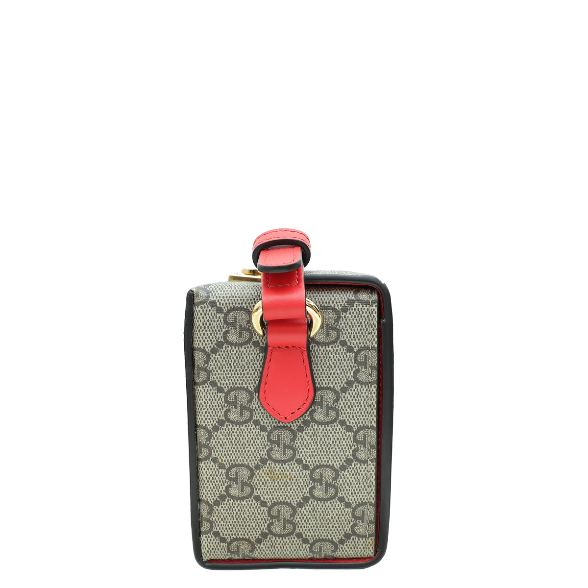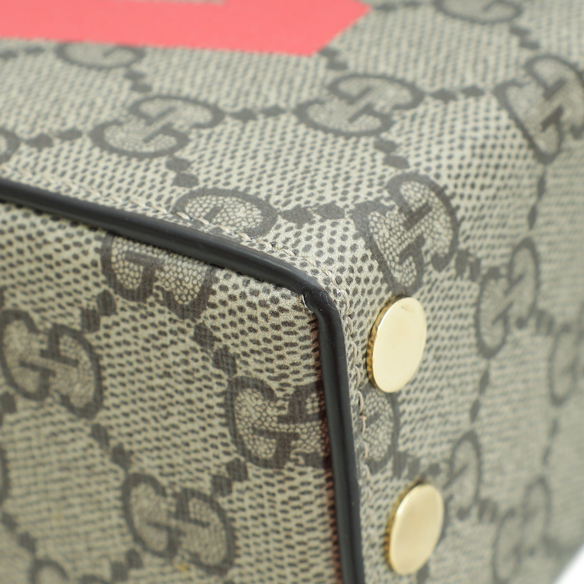 Material: Ebony/New Geranium GG Coated Canvas and Leather Trim with "LOVE" Letters Motif Overlay