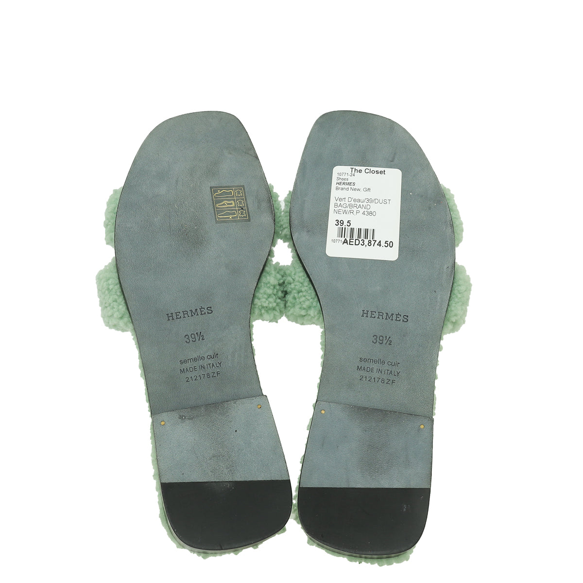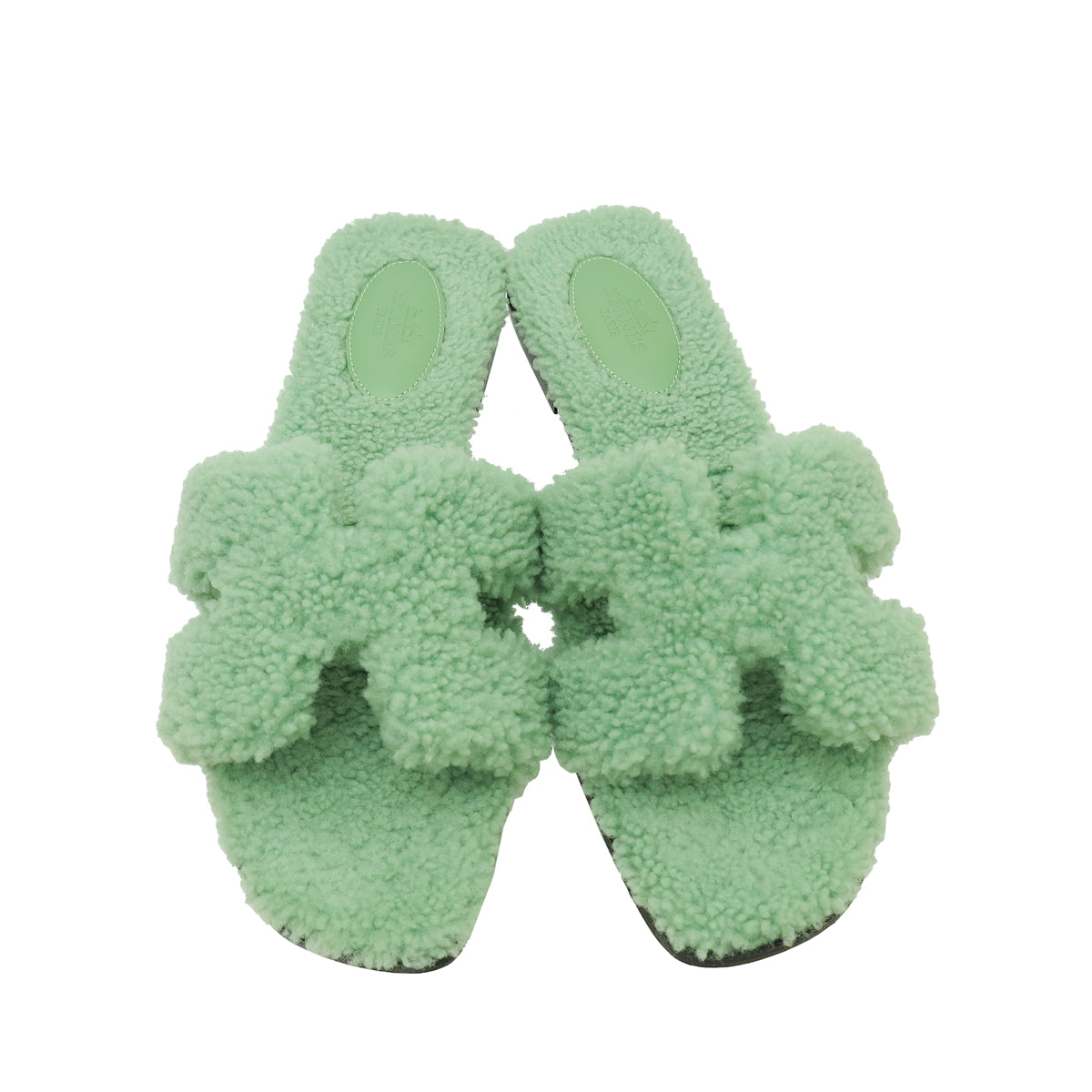 Hermes Vert D'eau Oran Shearling Wool Sandal 39.5-Hermes-THE CLOSET