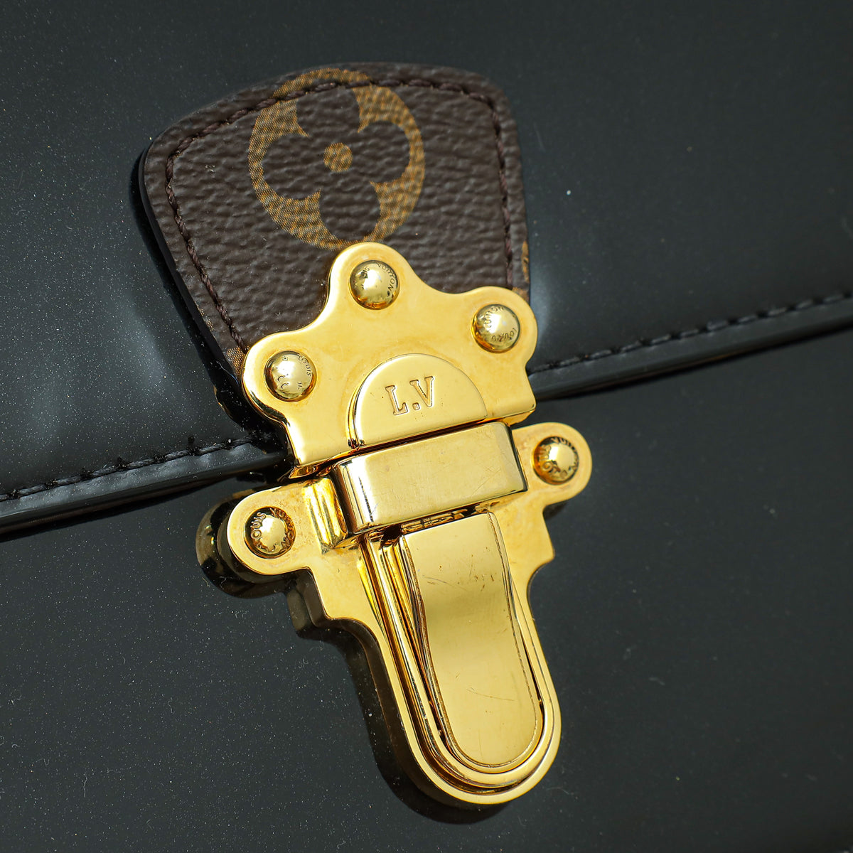 - Material: Black Vernis Leather and Monogram Coated Canvas