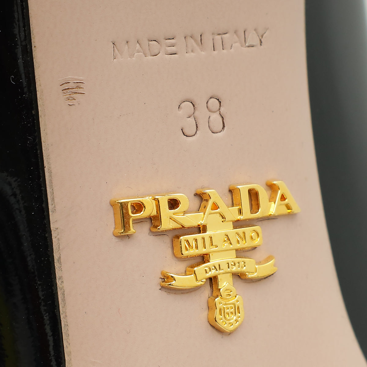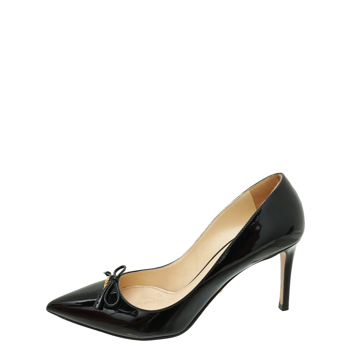 Material: Black Patent Leather with Logo and Bow Details