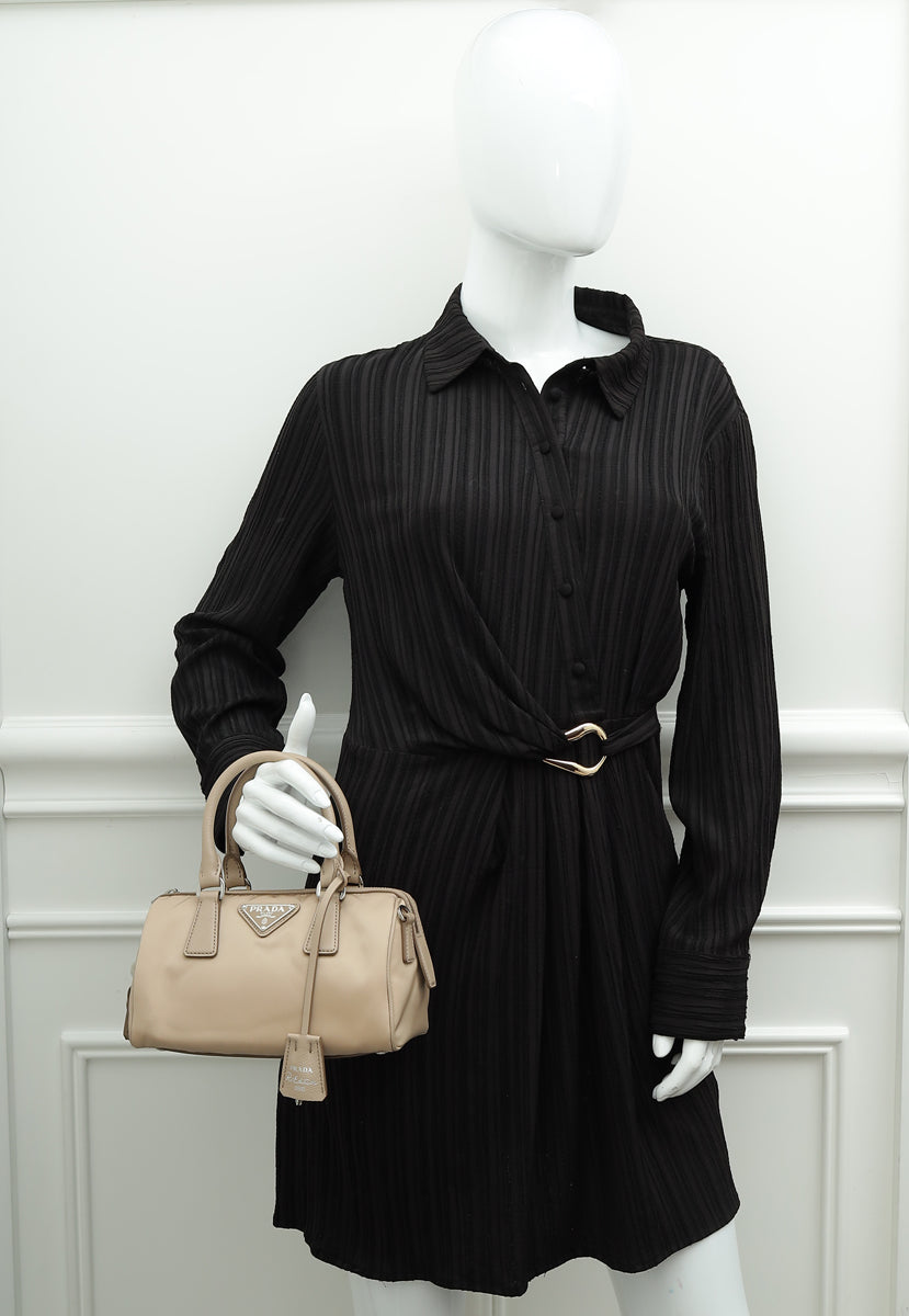 Prada Cammeo Beige Tessuto Re-Edition 2005 Bauletto Bag