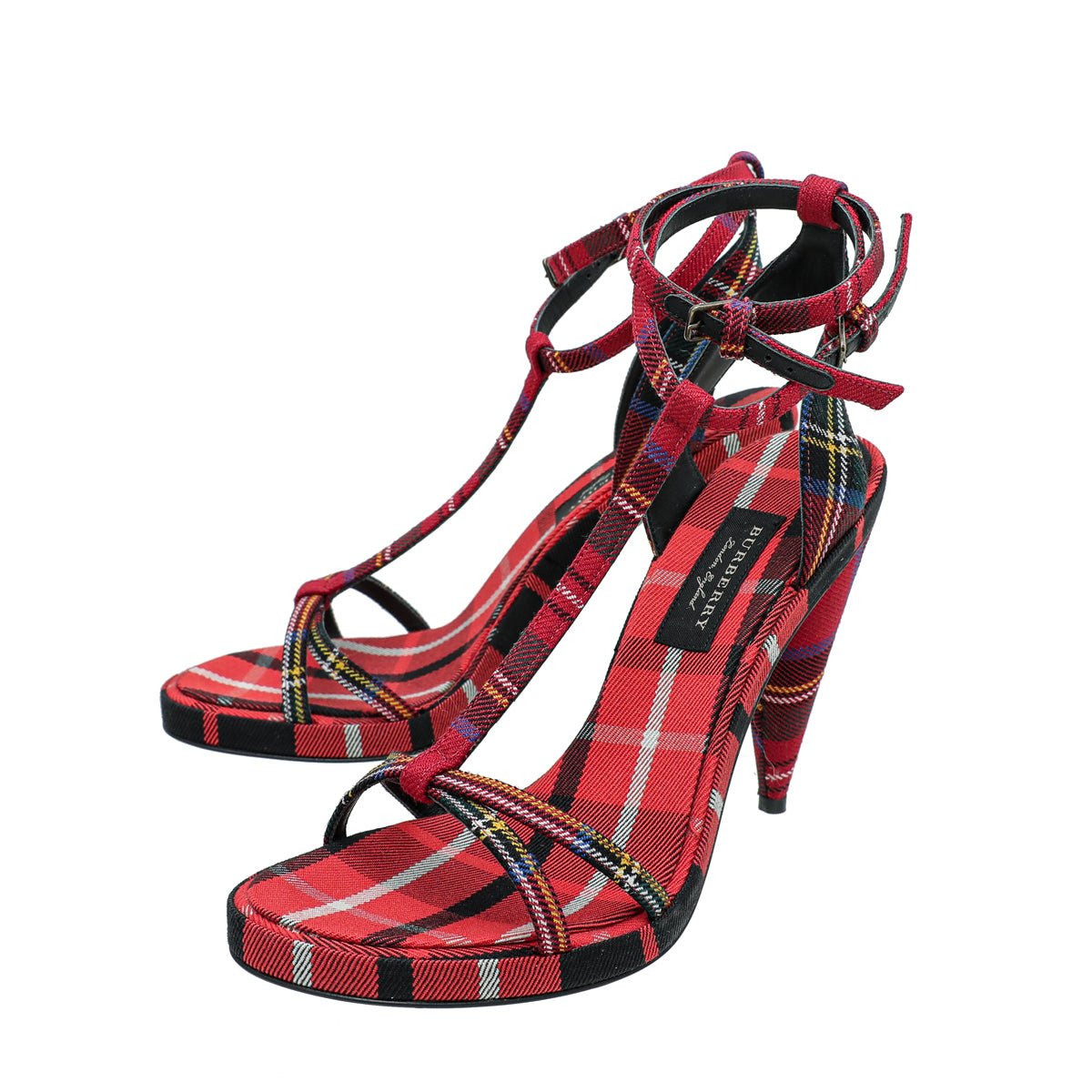 Burberry Red Hans T-Strap Cone Heel Sandal 38.5