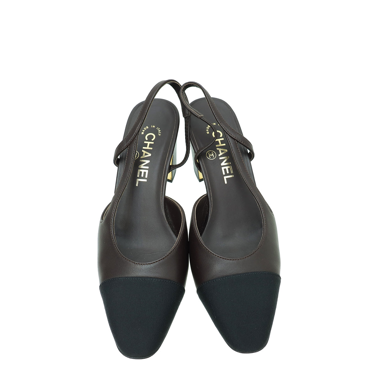 Chanel Bicolor CC Cap Toe Slingback Pump 37.5
