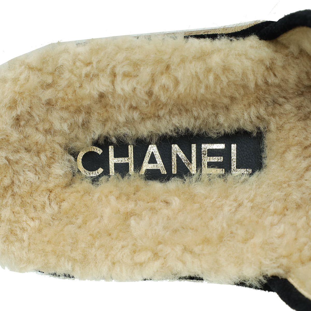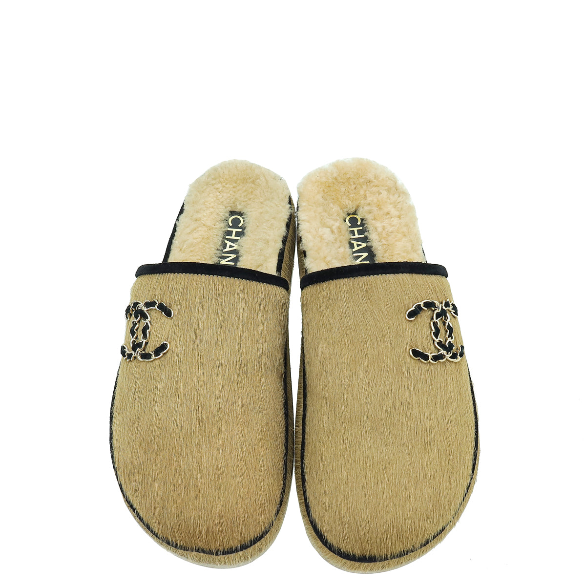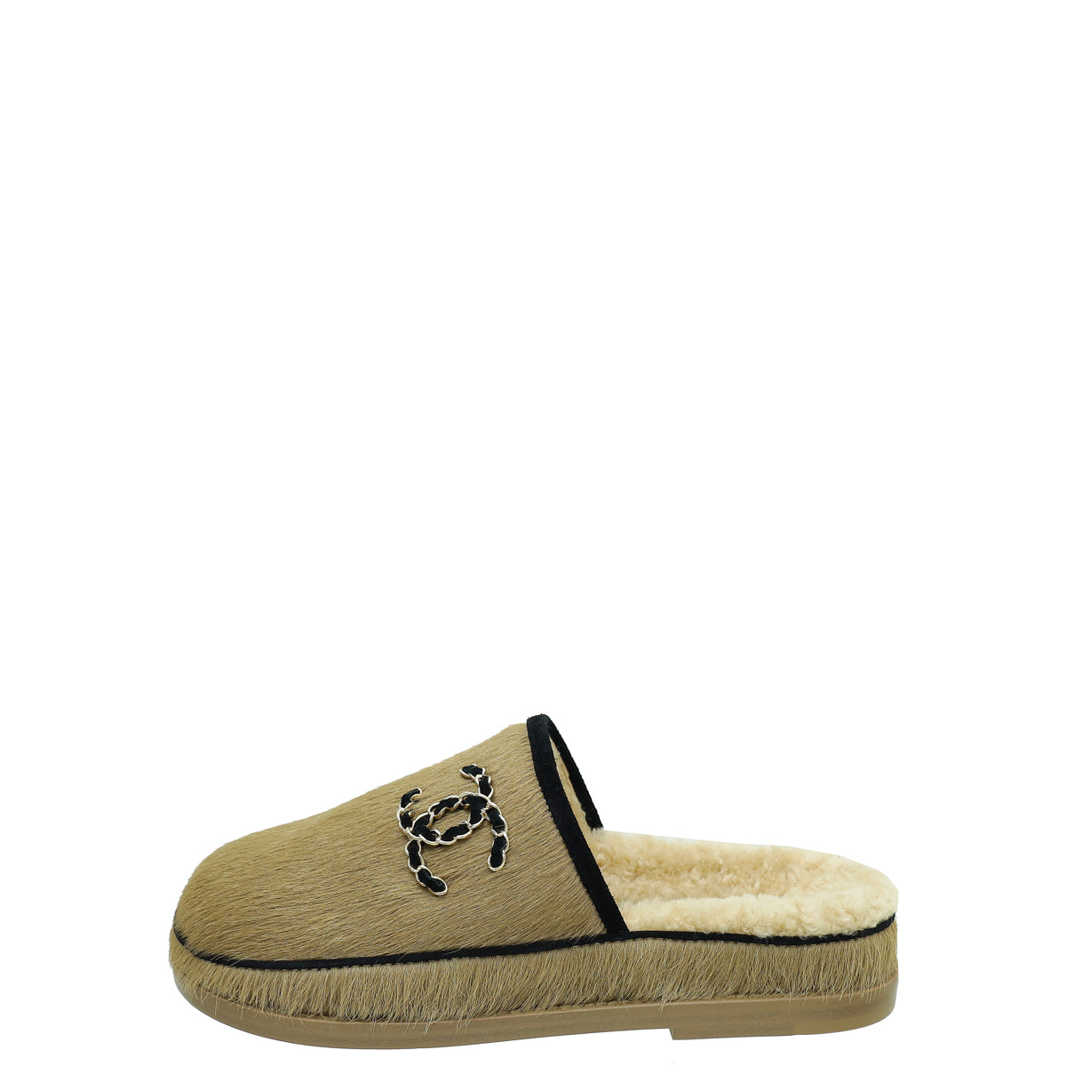 Chanel Bicolor CC Pony Hair and Shearling Mules 37