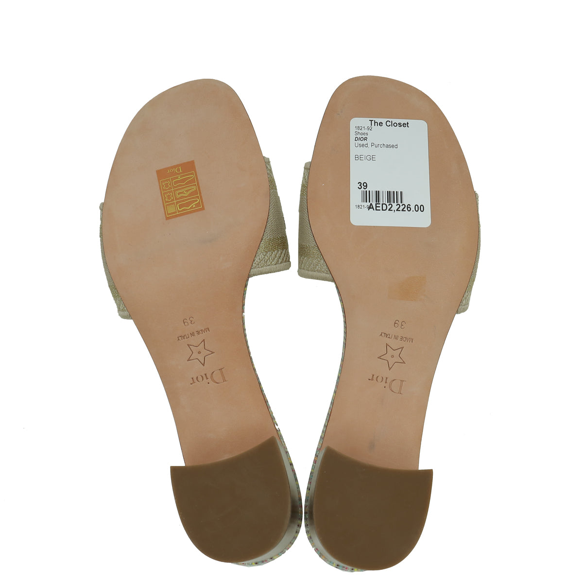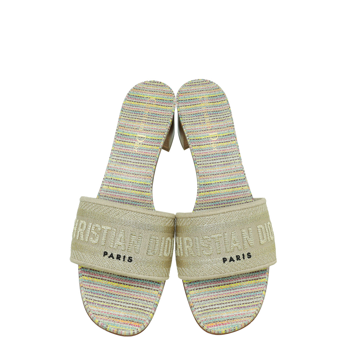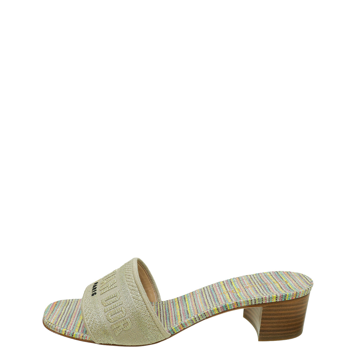 Christian Dior Beige Gold Dway Lurex Romance Embroidered Mules 39