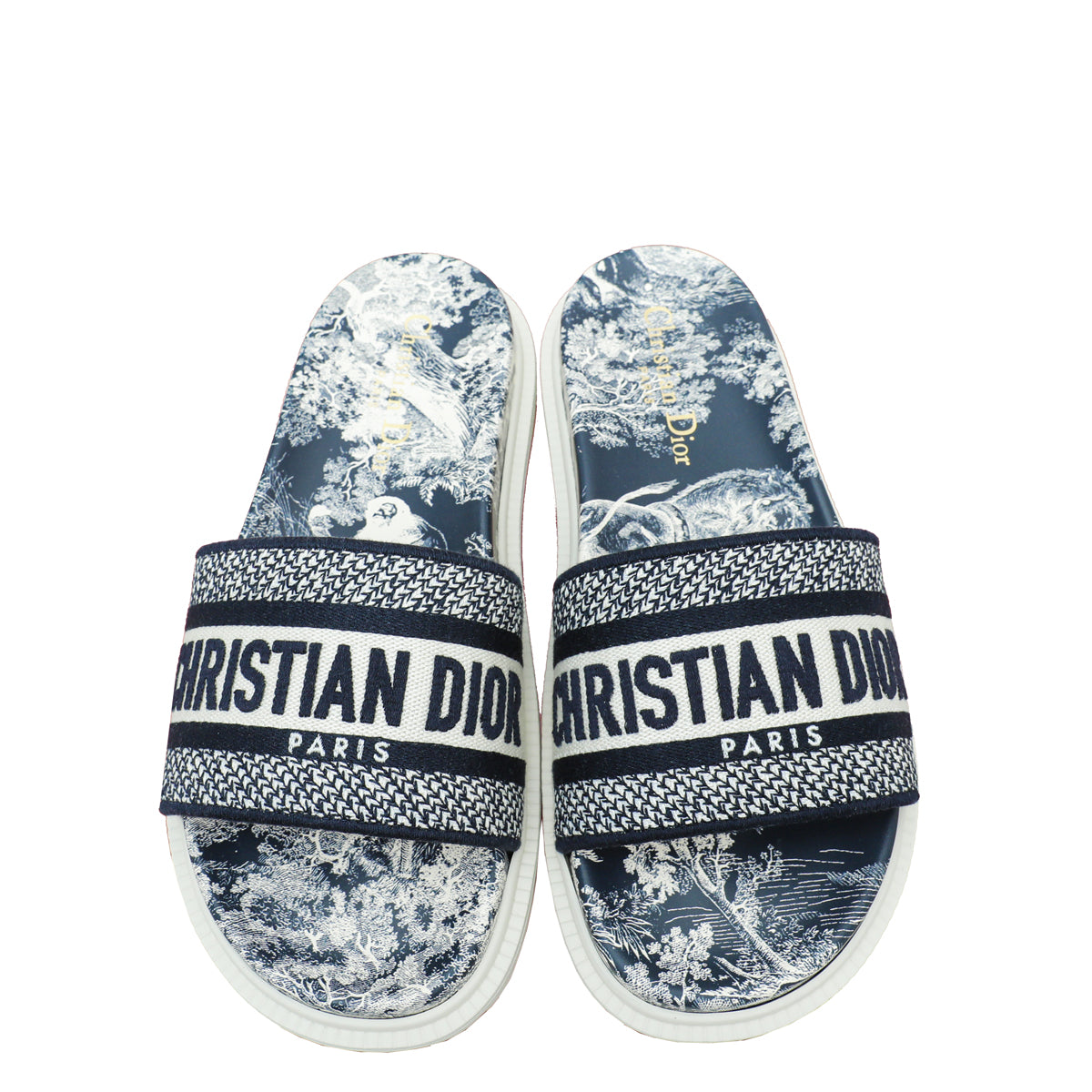 Christian Dior Bicolor Toile de Jouy Embroidered Dway Slide Sandal 39