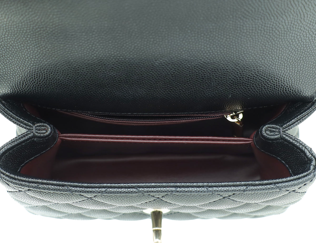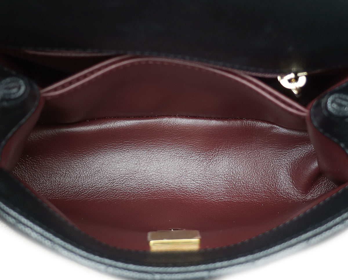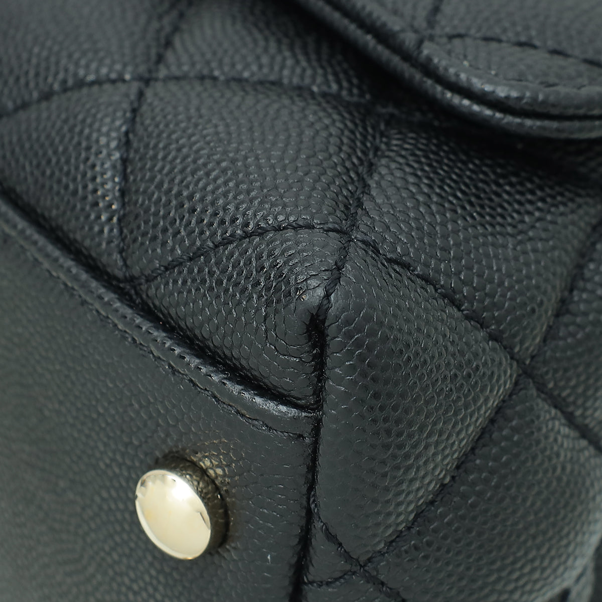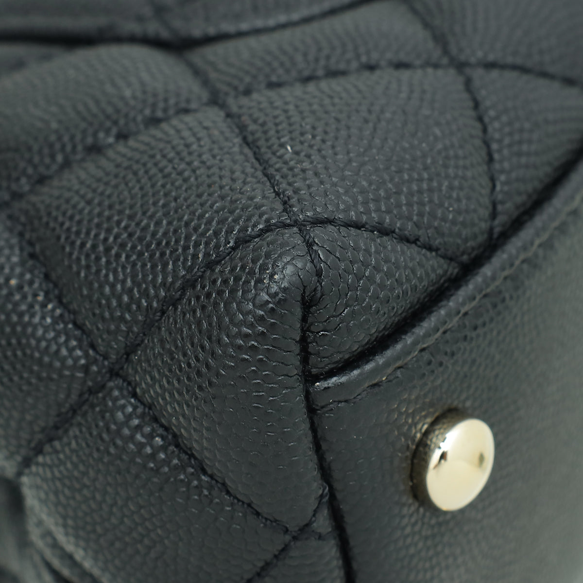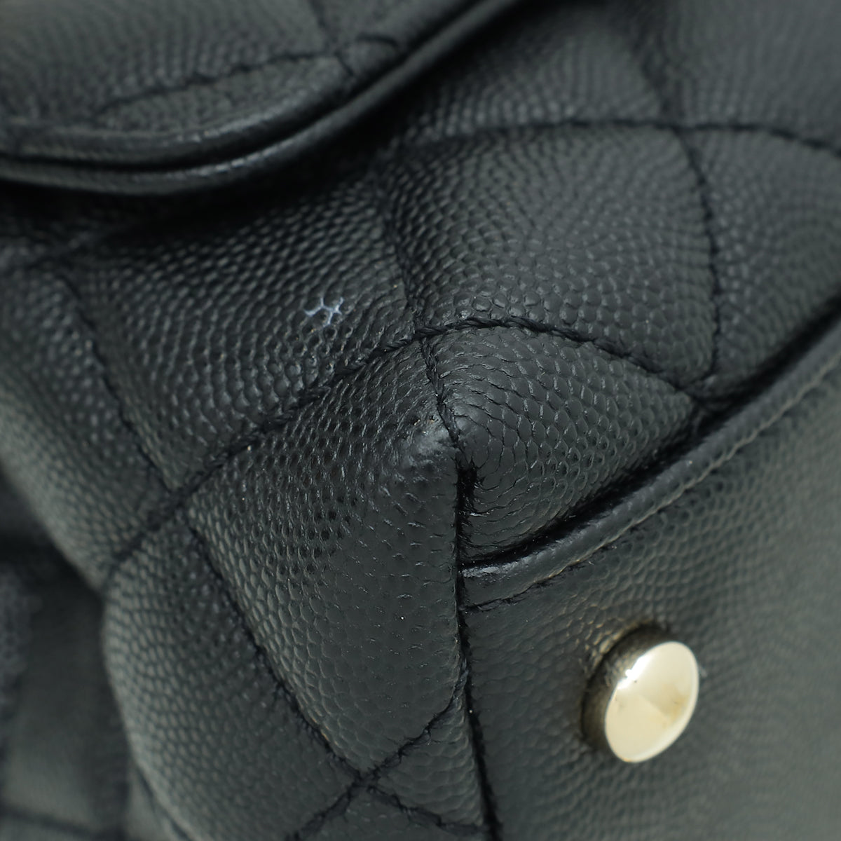 - Material: Black Quilted Caviar Leather with Lizard Handle Leather Trim