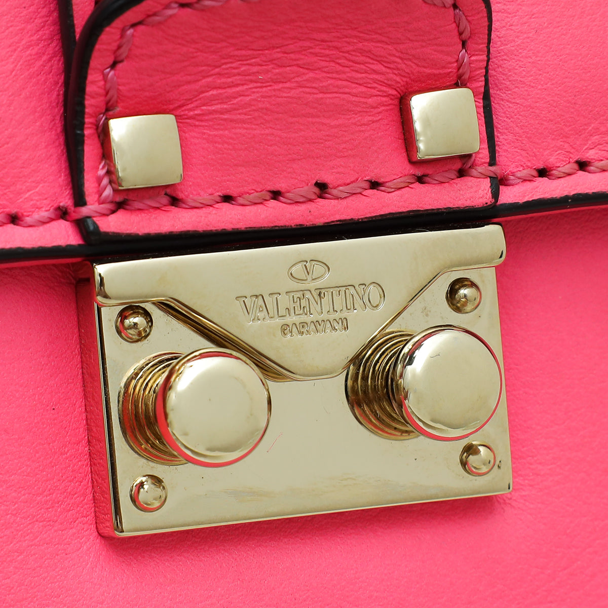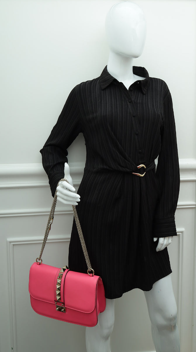Valentino Bright Pink Glam Lock Rockstud Chain Flap Medium Bag