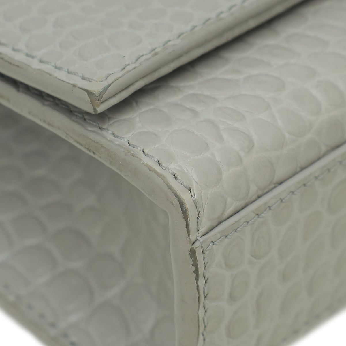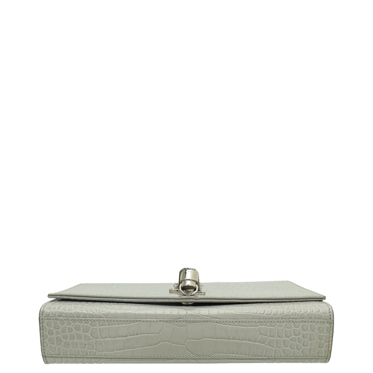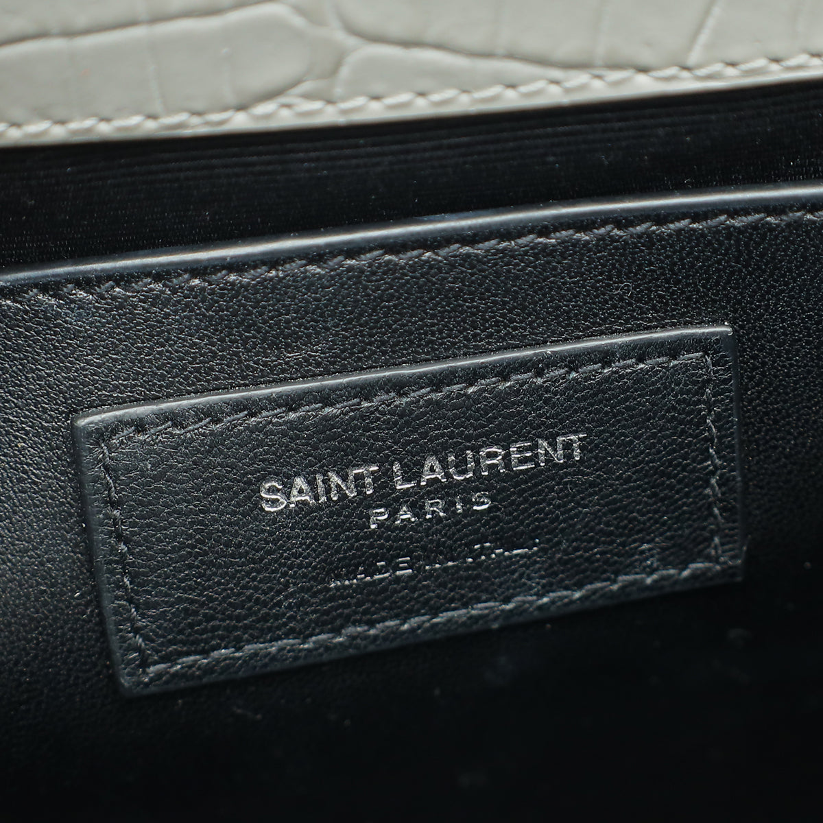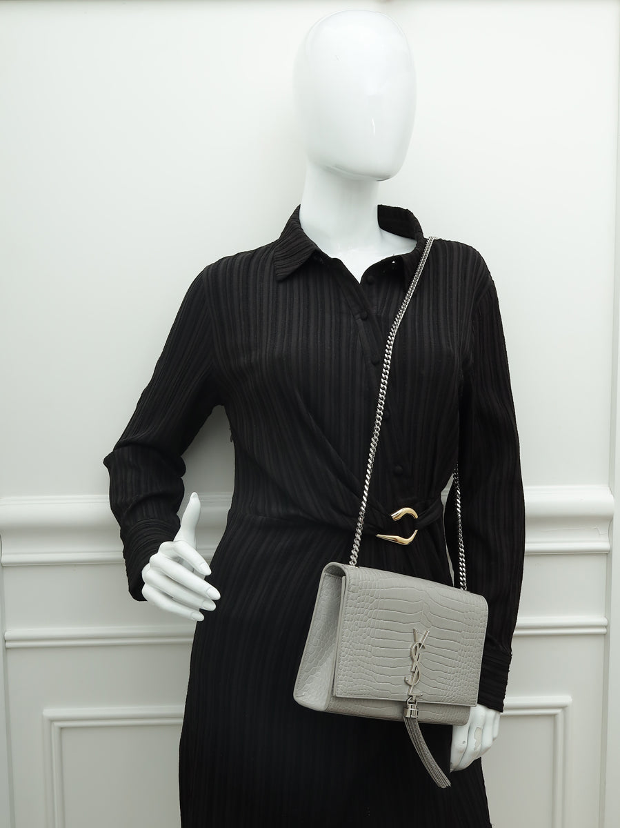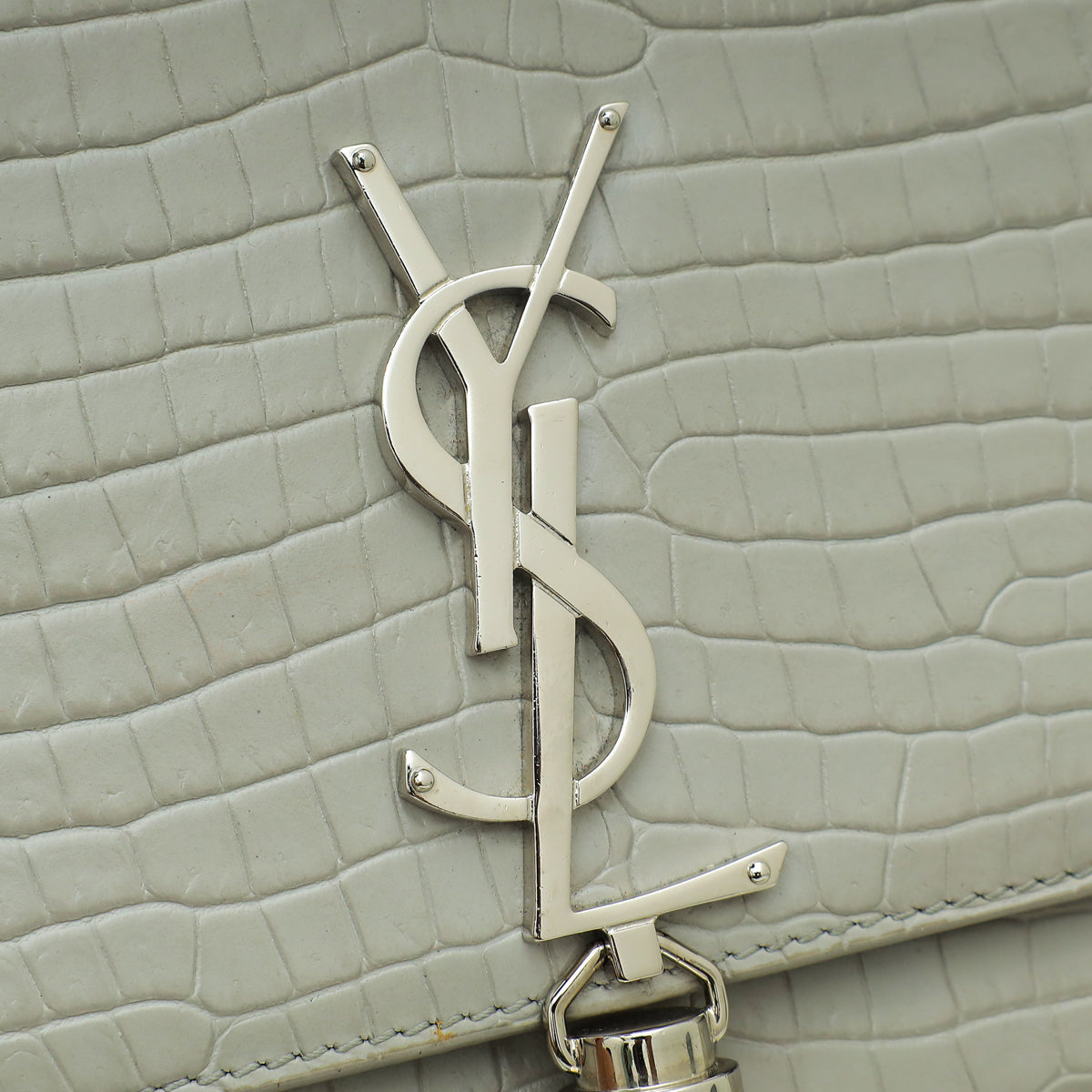 YSL Grey Kate Tassel Croco Embossed Medium Shoulder Bag