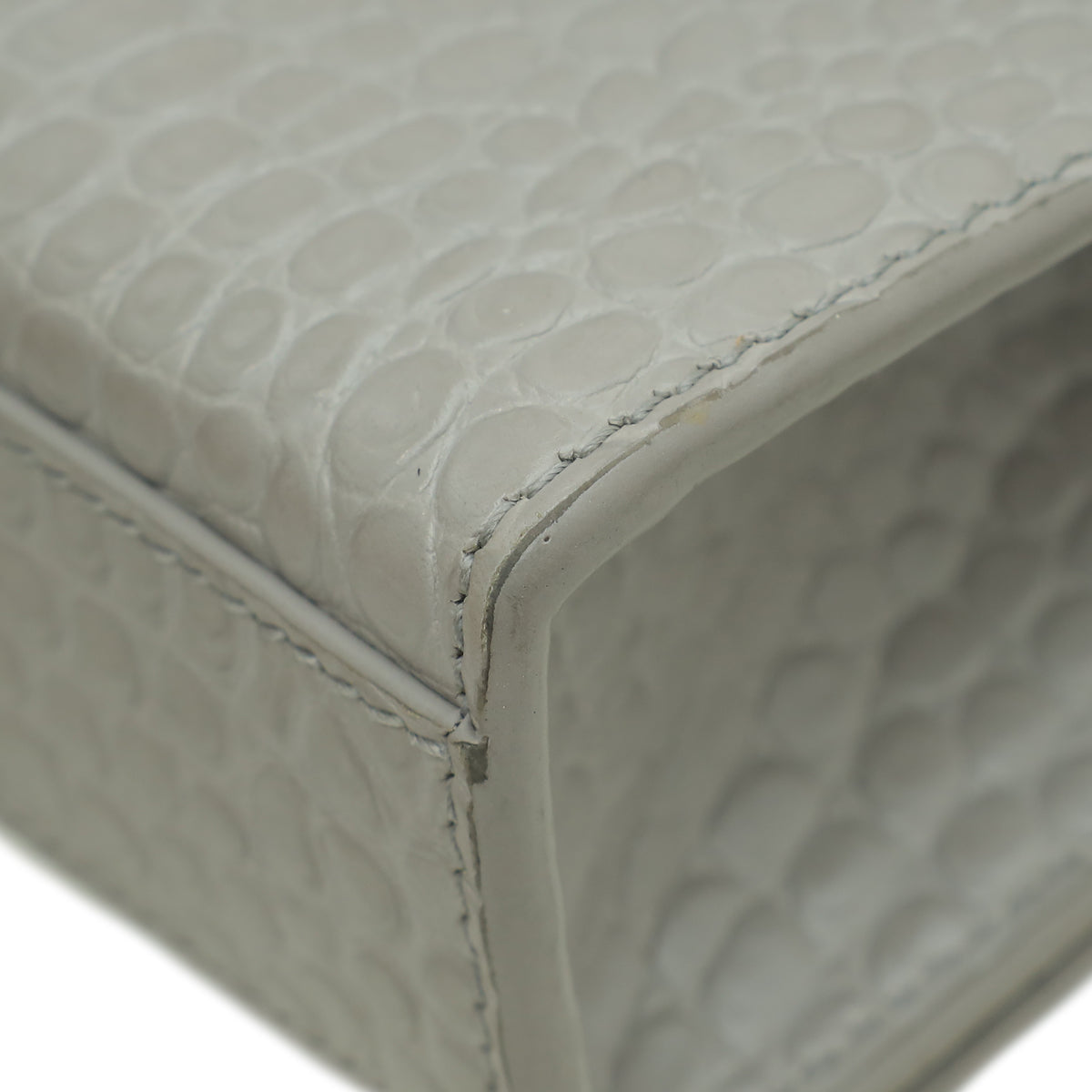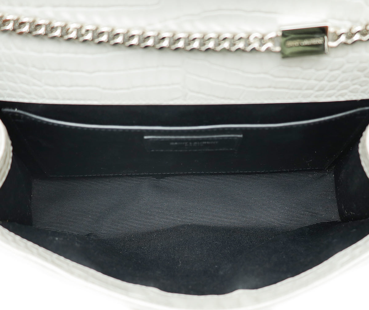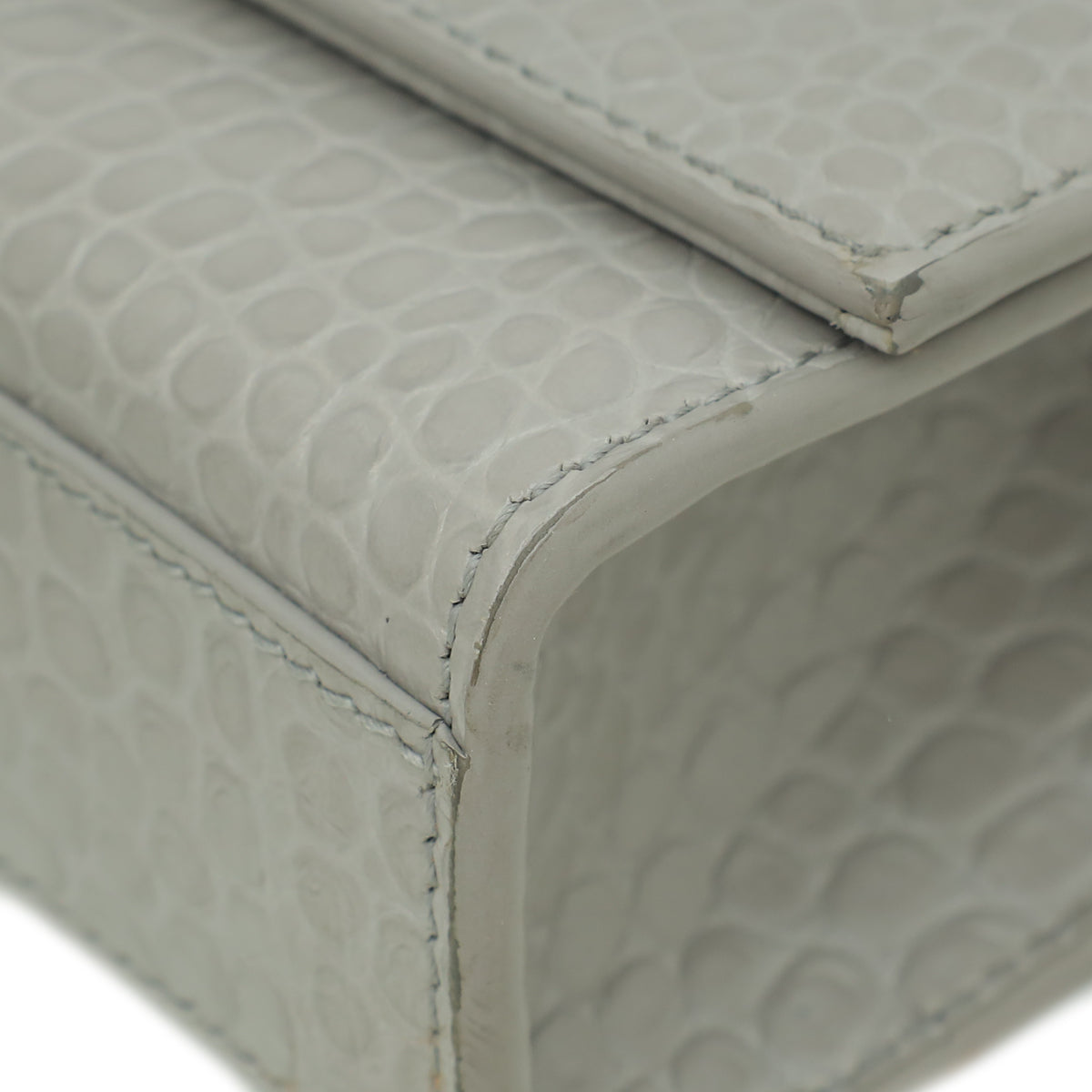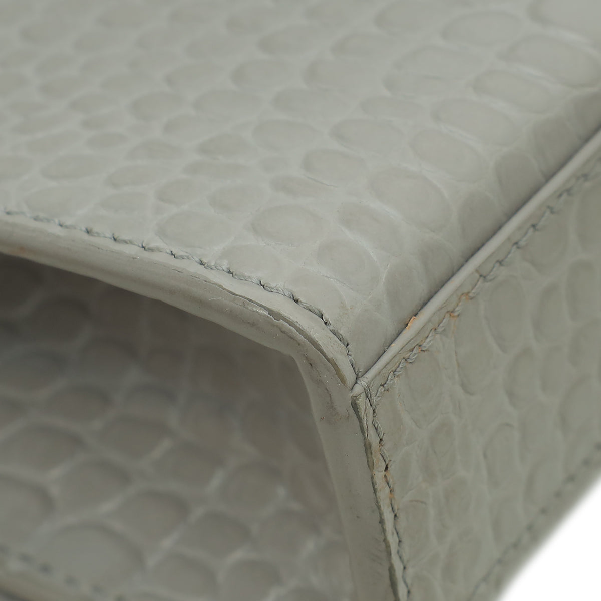 YSL Grey Kate Tassel Croco Embossed Medium Shoulder Bag