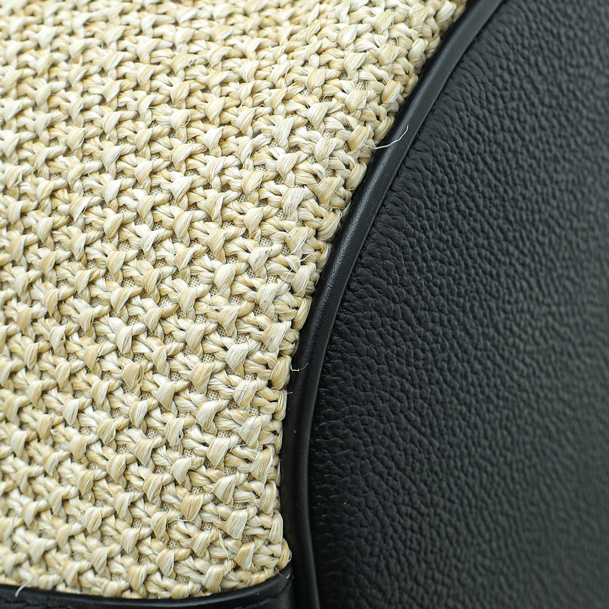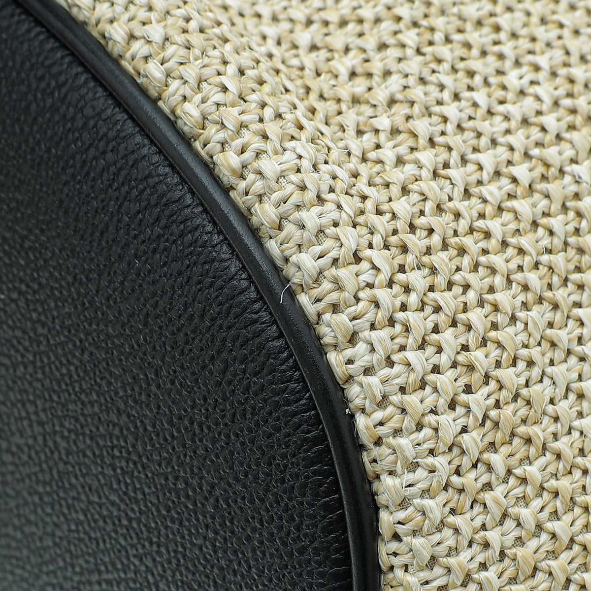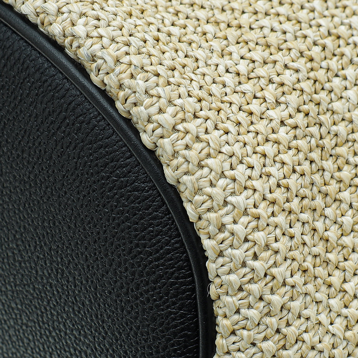 Material: Natural Knitted Raffia with Black Leather Trim